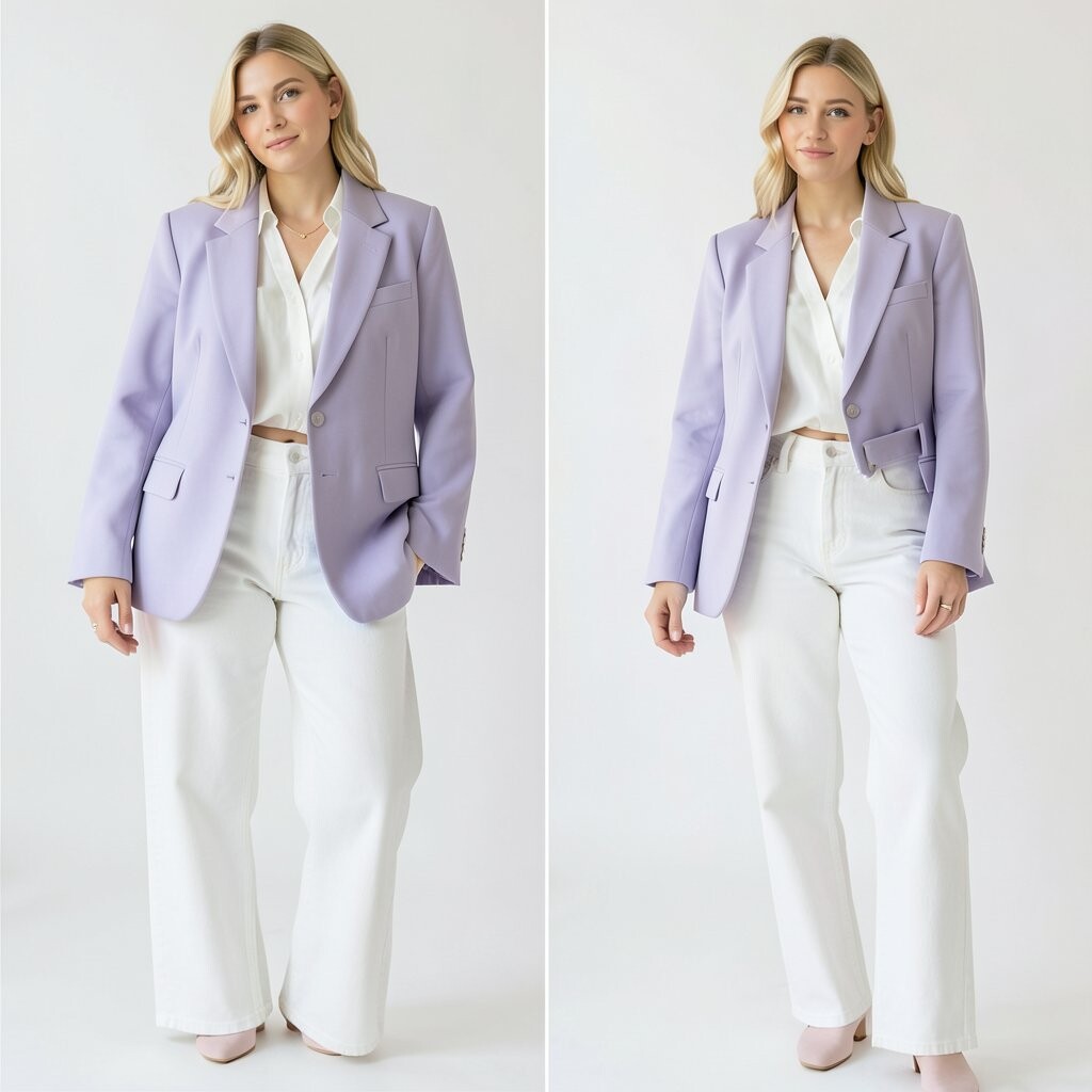 A lavender blazer paired with white jeans is a chic choice for those who love a touch of pastel with a crisp finish. Lavender is calming and stylish.