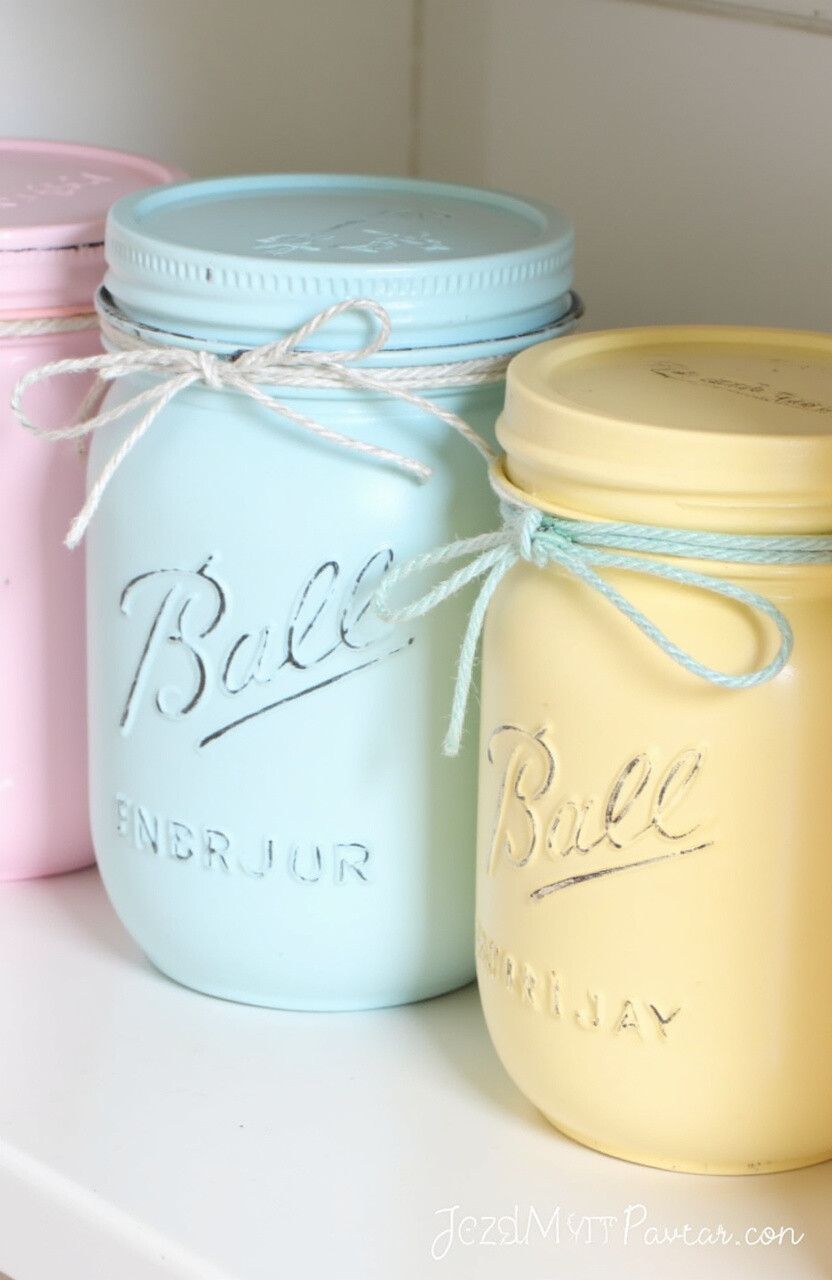 Use pastel-painted Mason jars to organize utensils or small pantry items. They’re versatile and add a rustic charm to your kitchen. Paint the lids or the jars themselves for a customized look.