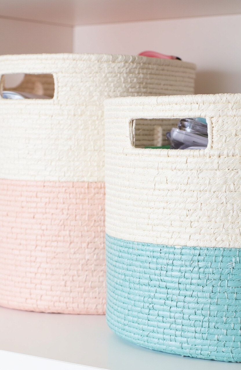 22. Pastel Woven Storage Bins