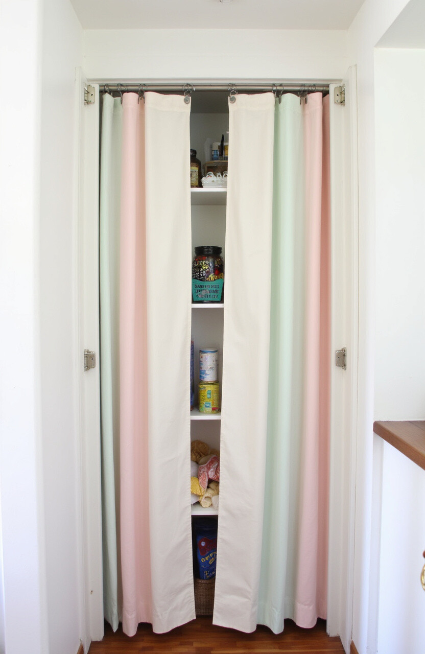 Install pastel-colored curtains to cover open pantry shelves. They hide clutter and add a soft touch to your kitchen. Choose light fabrics for an airy feel.