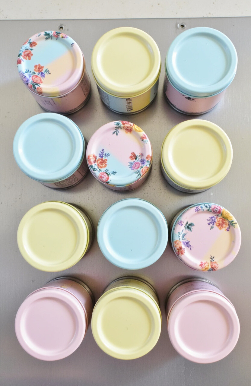 Store spices in magnetic tins with pastel lids and attach them to a metal surface. This frees up shelf space and keeps spices handy. The pastel lids add a splash of color to your pantry.