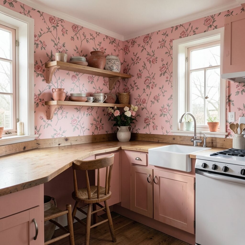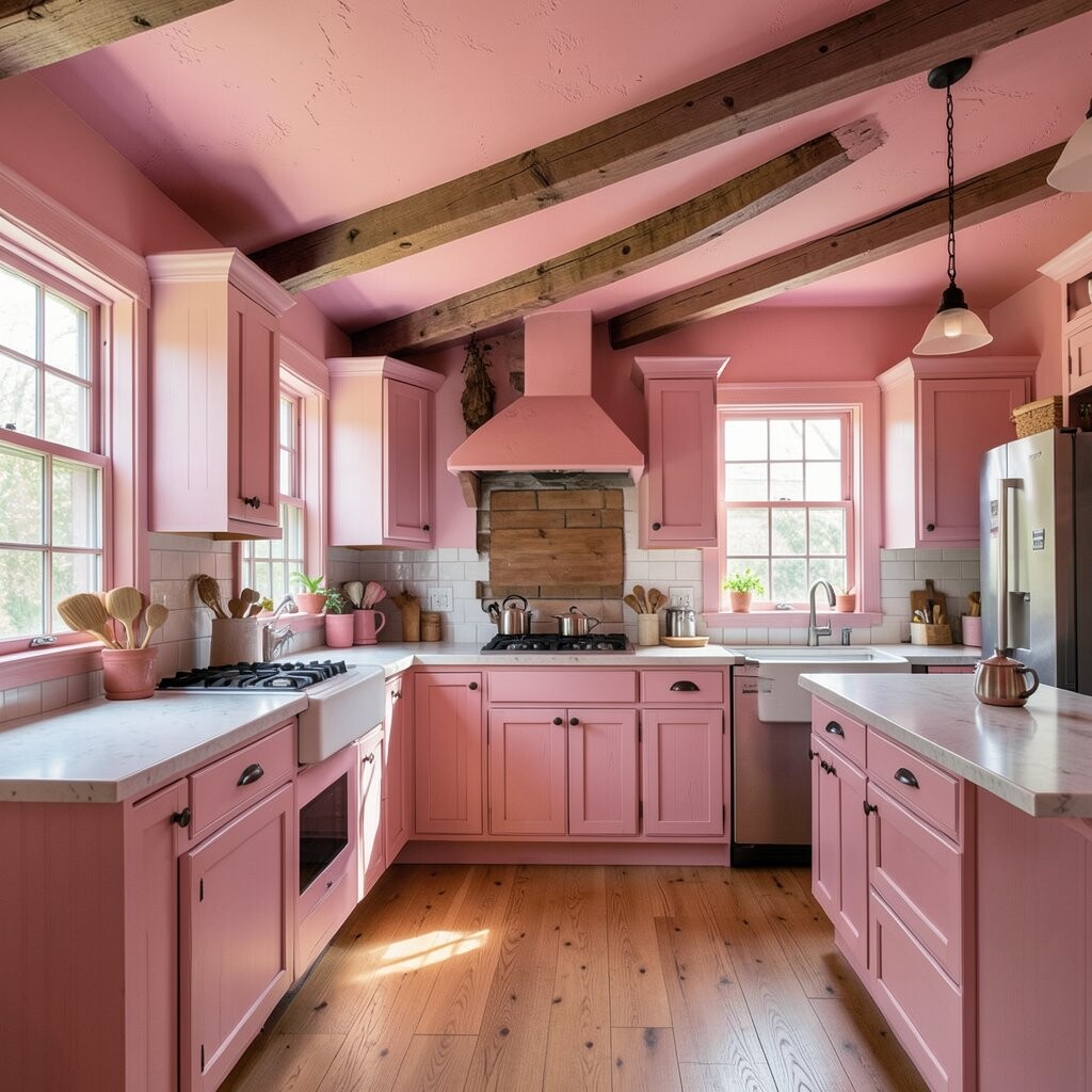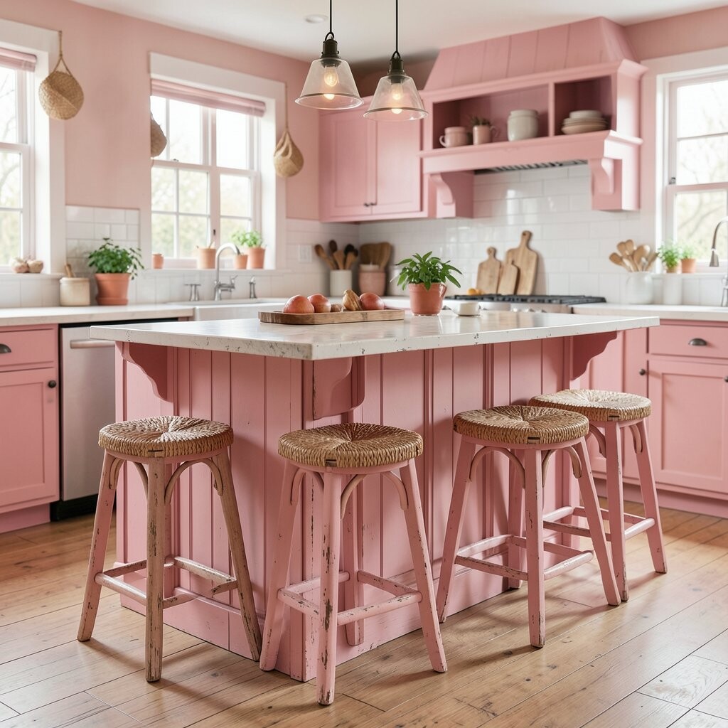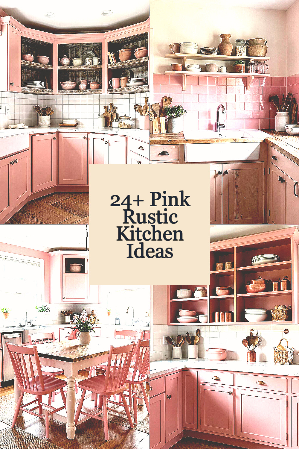 Pink and rustic style can make a kitchen feel warm, sweet, and full of charm. Think soft blush walls, worn wood, cozy textures, and little vintage touches that make the room feel special. If you love spaces that feel pretty and lived-in, these ideas may be right up your alley.
