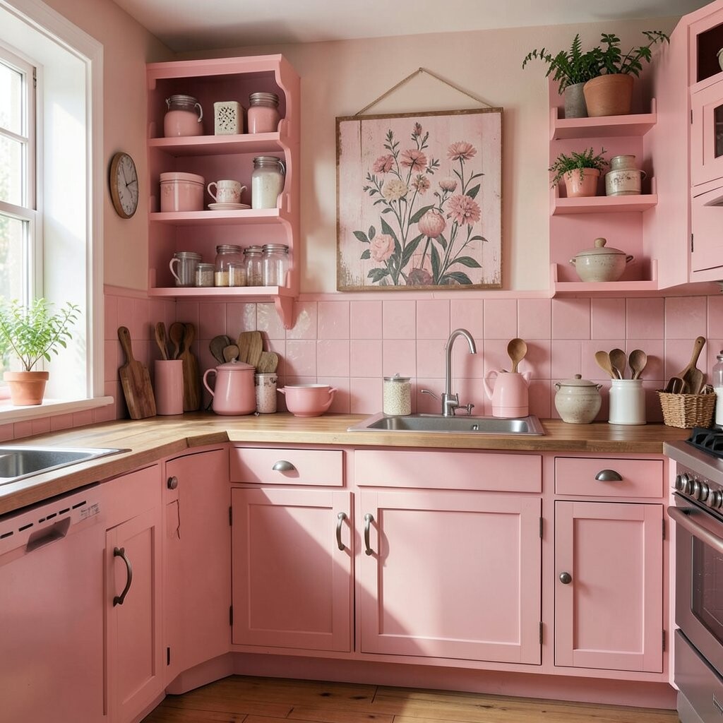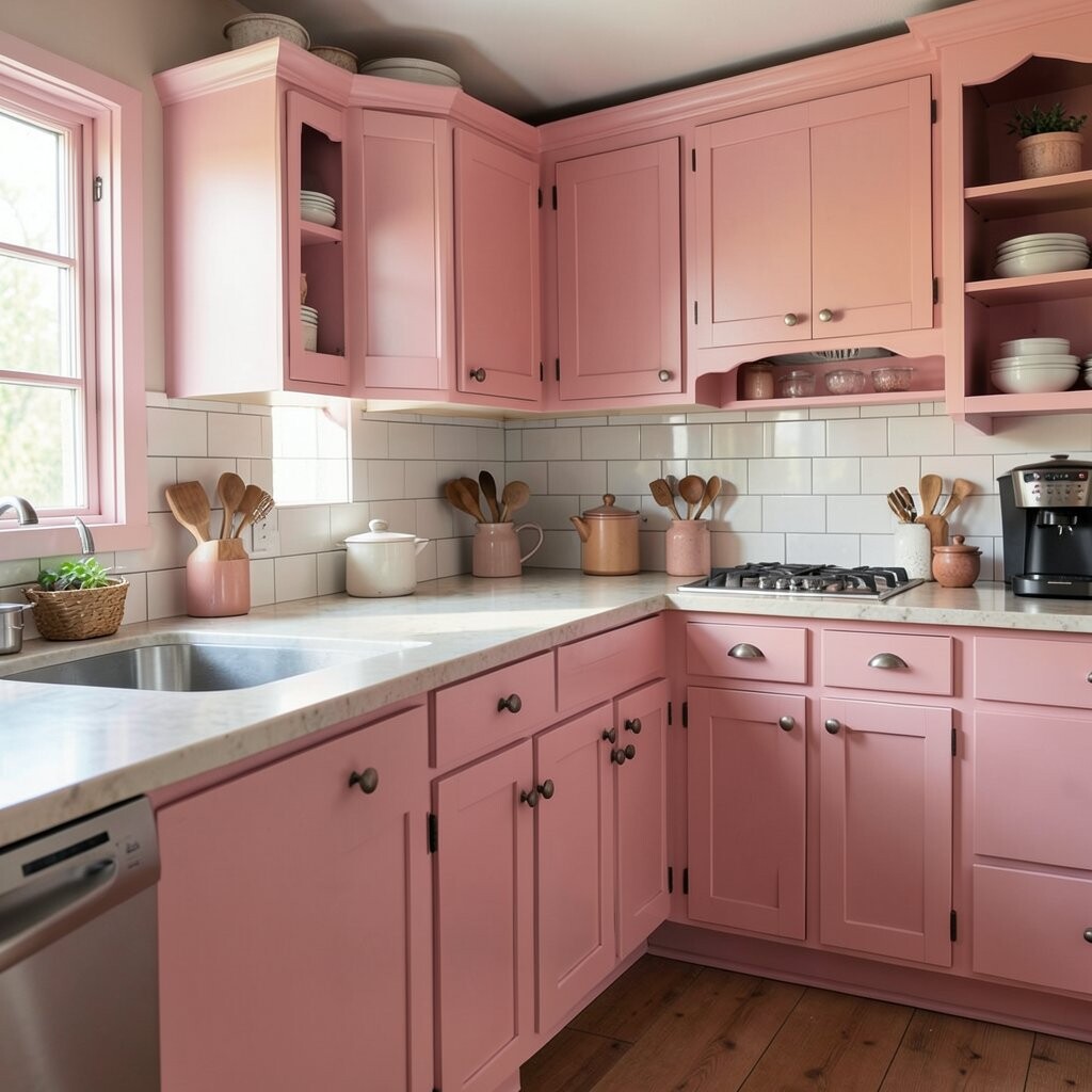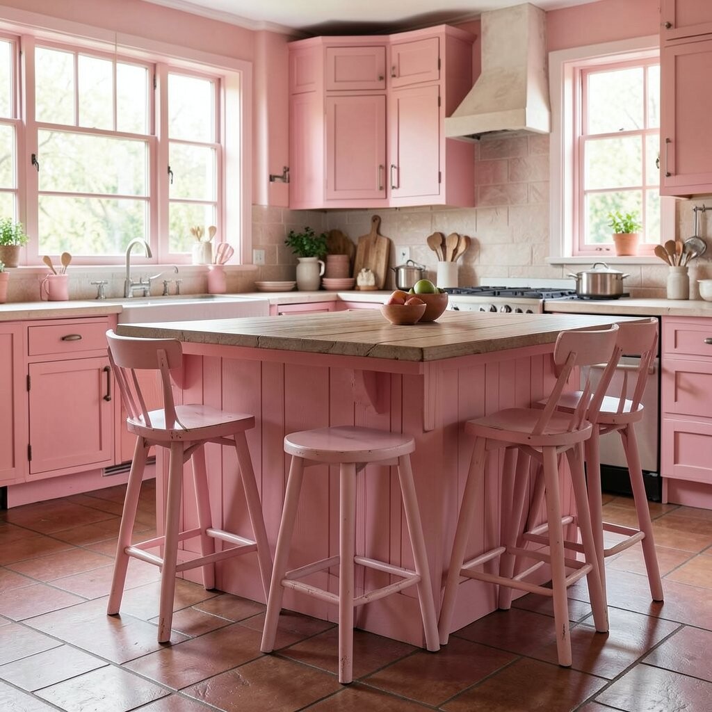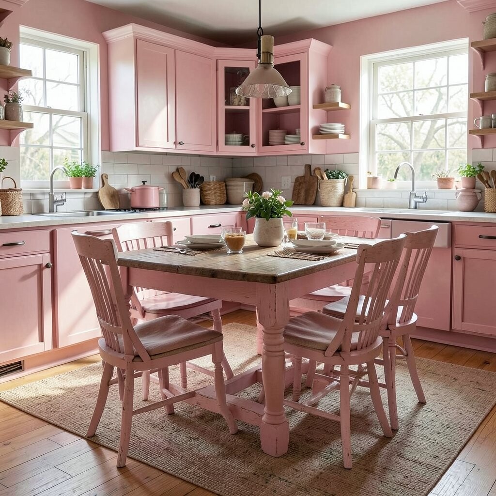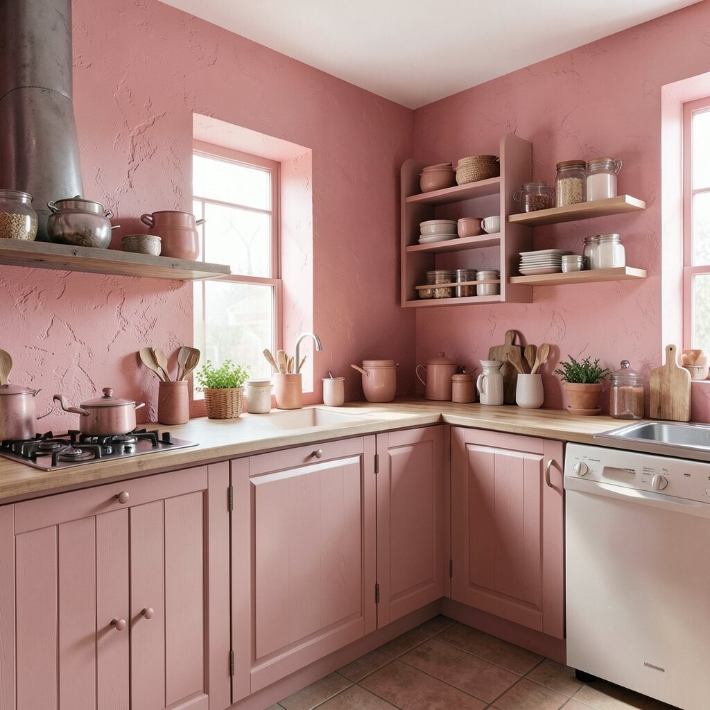 Textured pink walls can give your kitchen a rustic and cozy feel. Think of subtle patterns or distressed finishes that add character. It’s a unique way to incorporate pink into your decor.