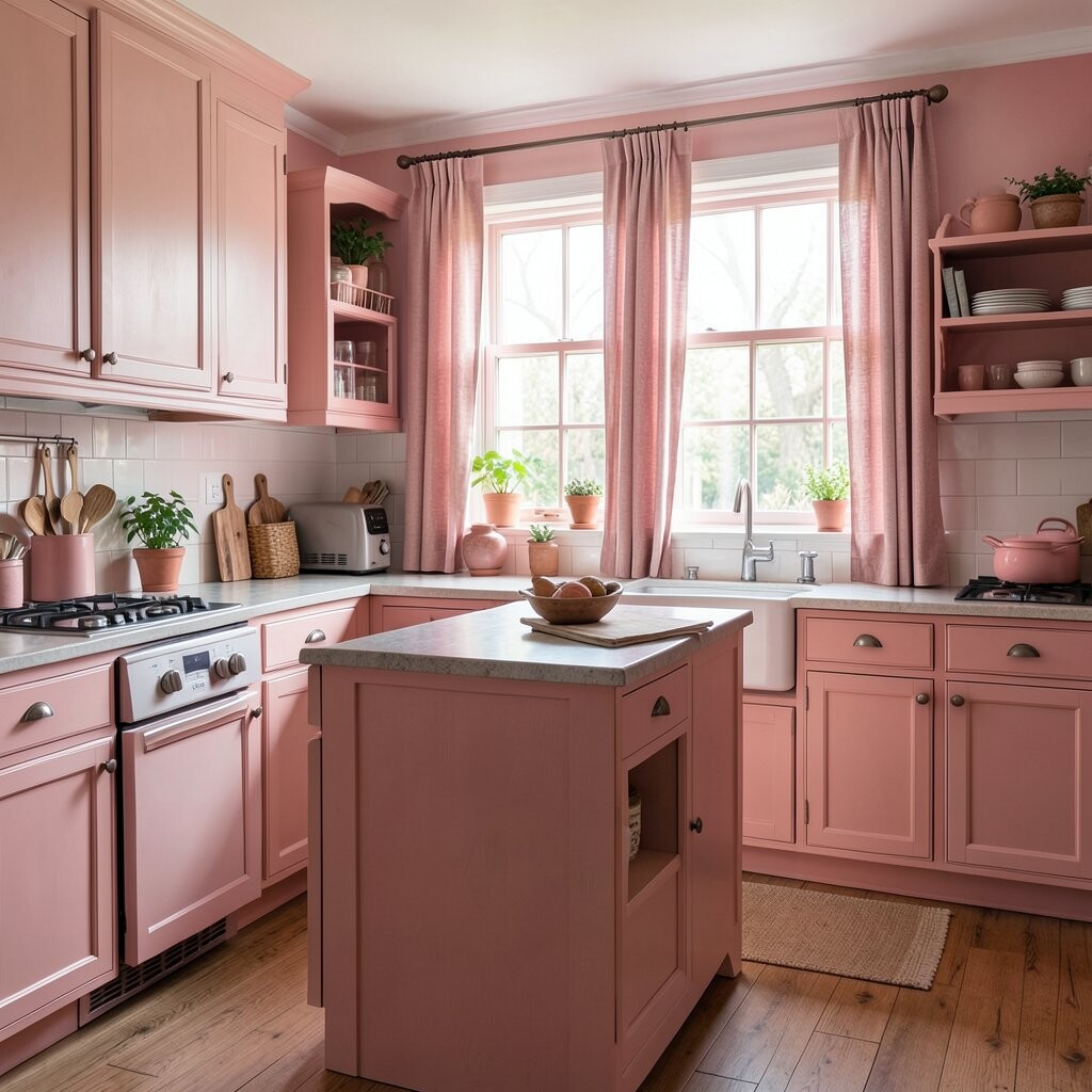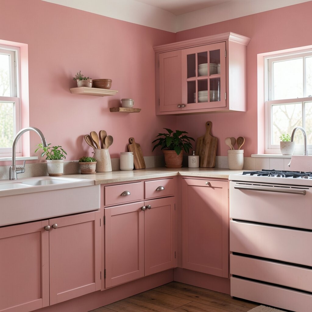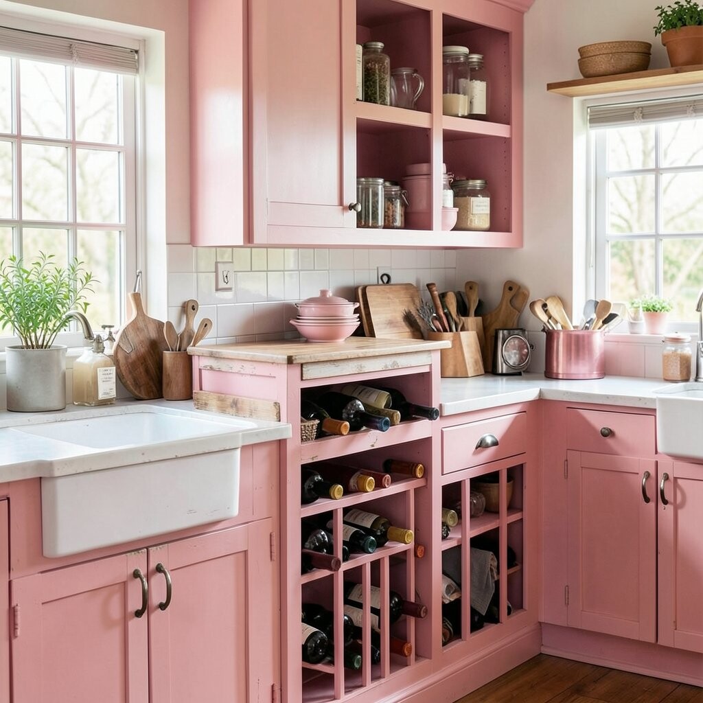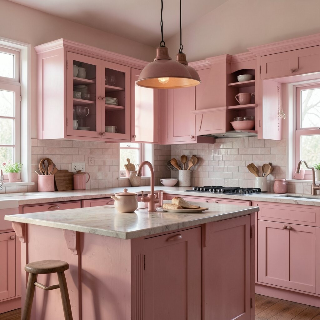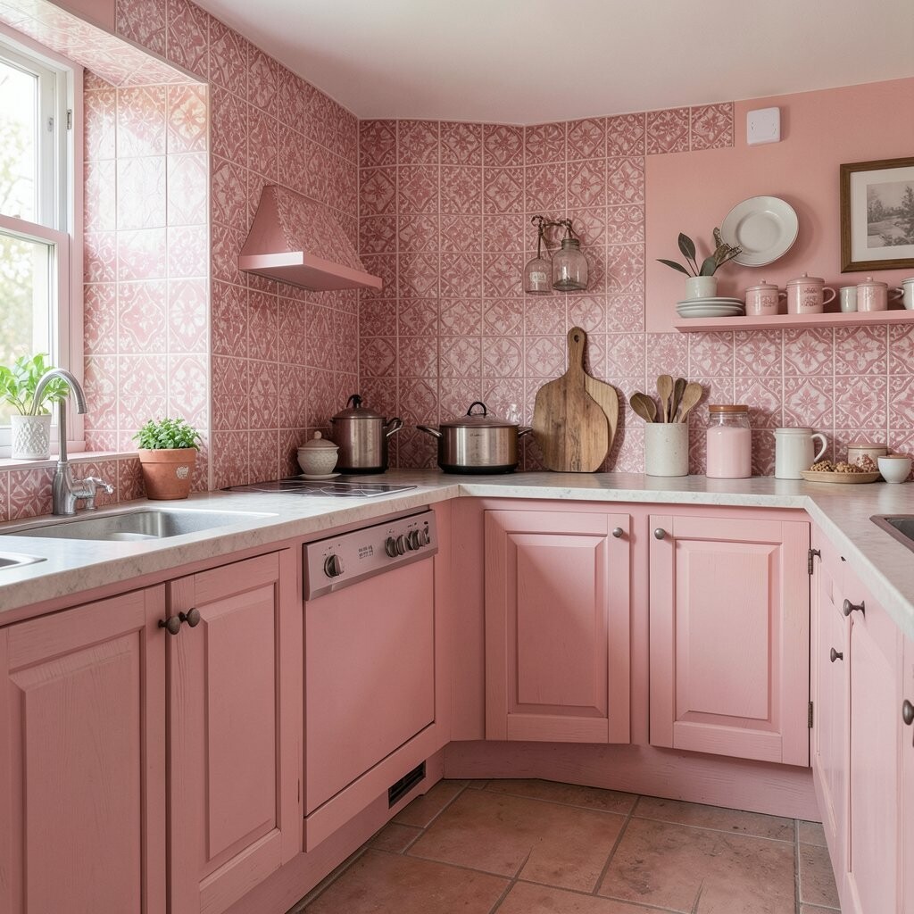 Textured pink walls can give your kitchen a rustic and cozy feel. Think of subtle patterns or distressed finishes that add character. It’s a unique way to incorporate pink into your decor.