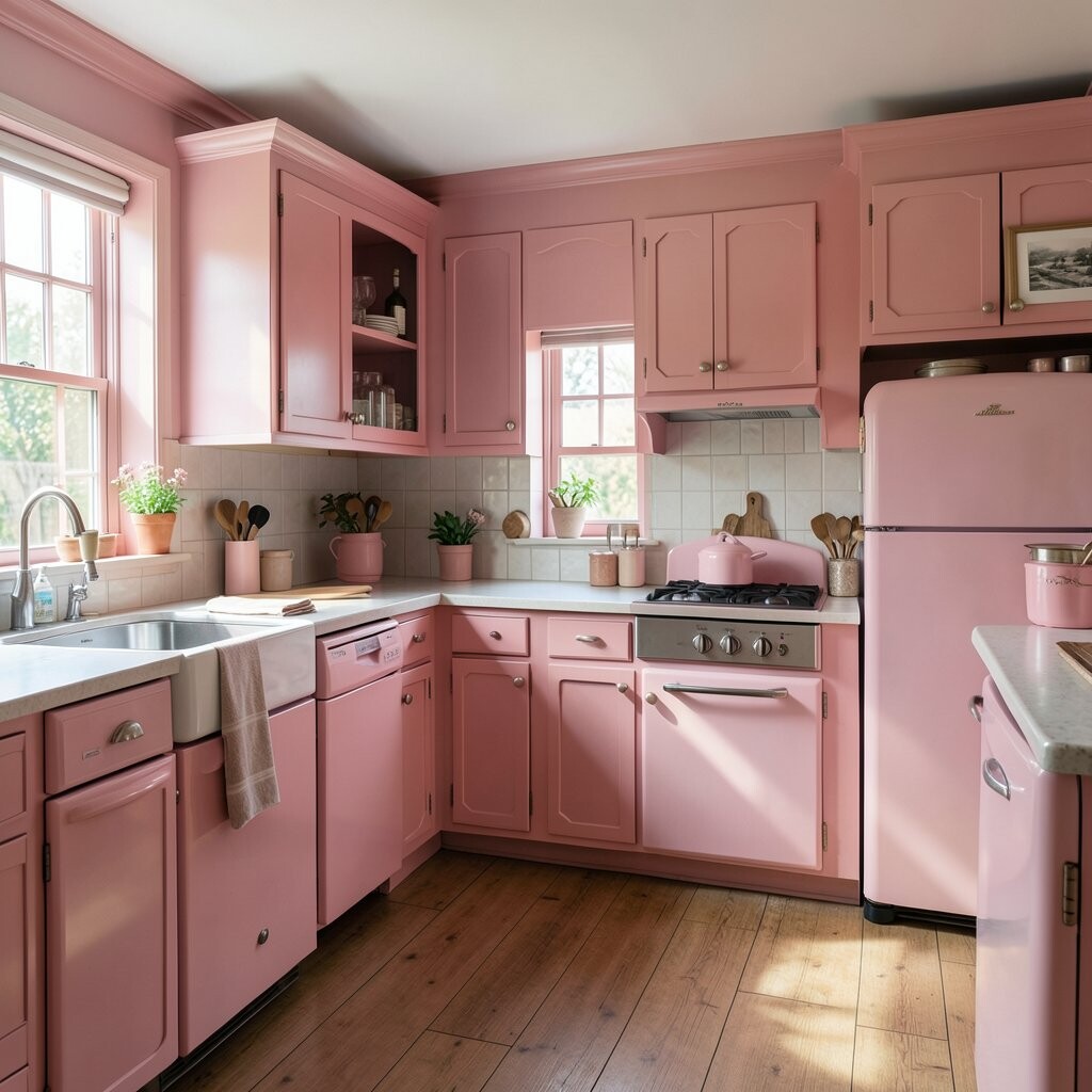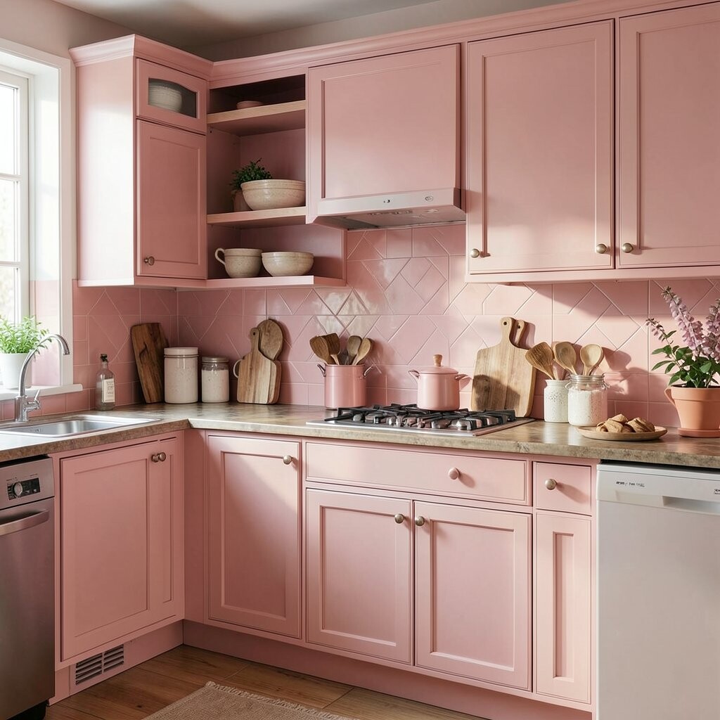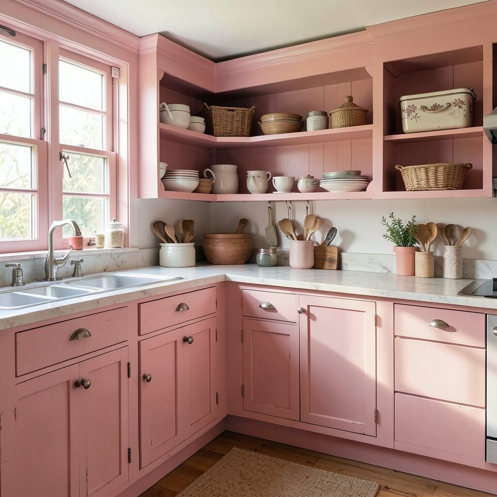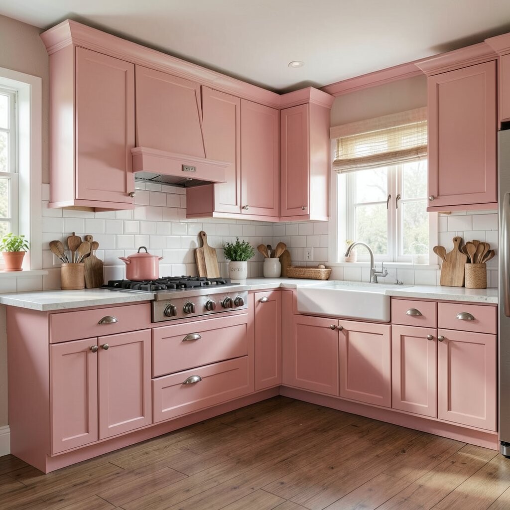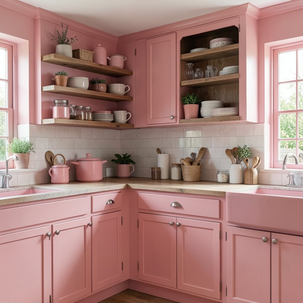 Textured pink walls can give your kitchen a rustic and cozy feel. Think of subtle patterns or distressed finishes that add character. It’s a unique way to incorporate pink into your decor.
