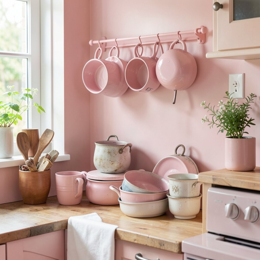 A pink accent wall can change the whole vibe of your kitchen. It adds depth and interest without overwhelming the room. Choose a shade that complements your existing decor for a cohesive look.