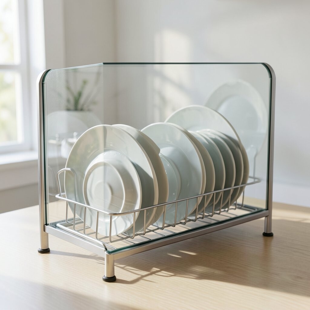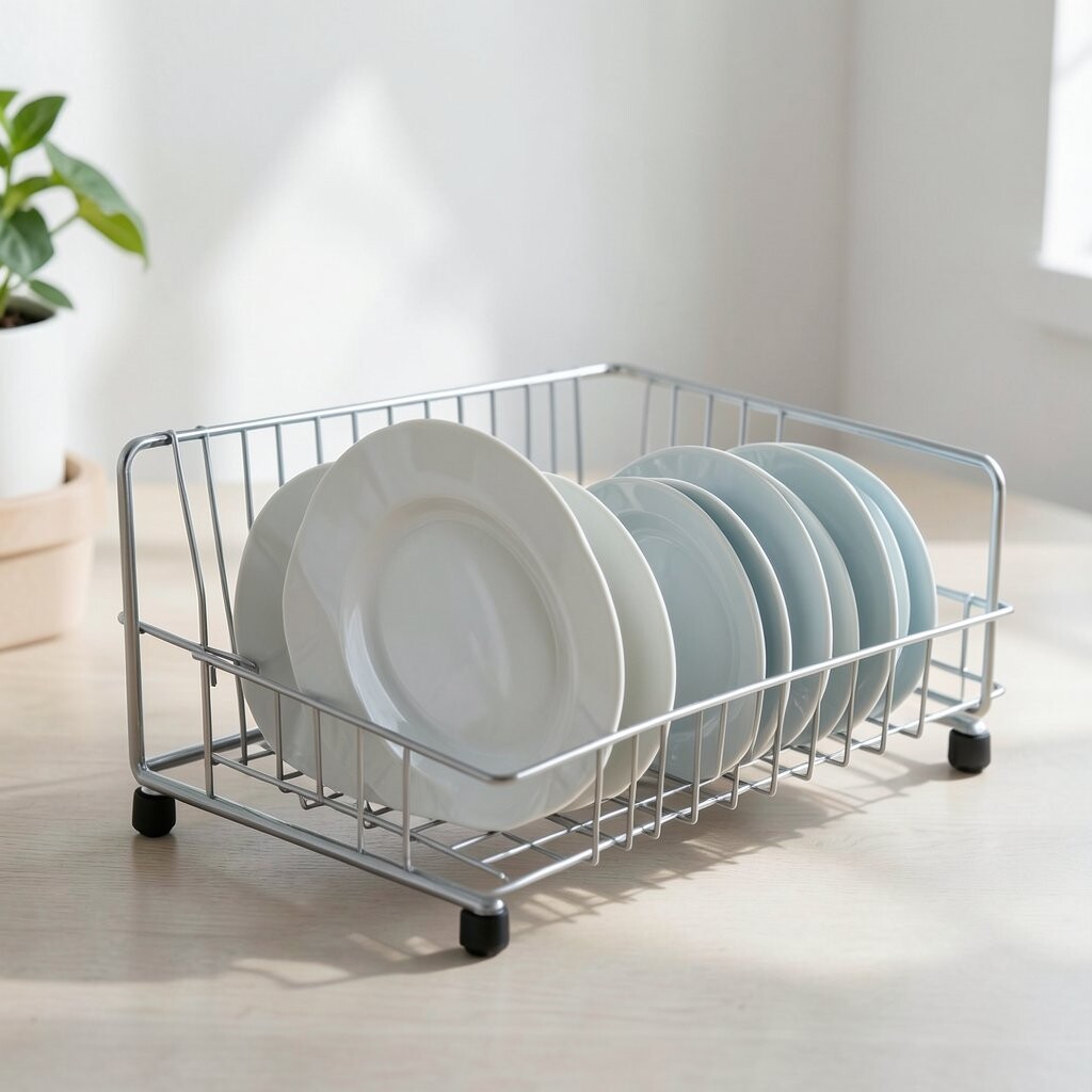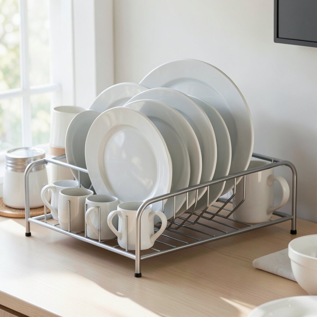 A metal plate rack gives a clean and sharp look. It feels cool, simple, and just right for a modern home.