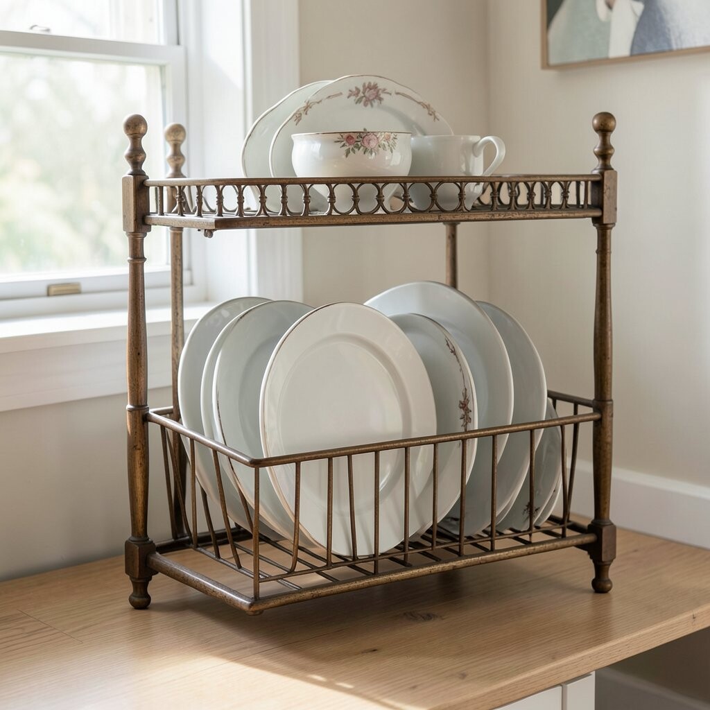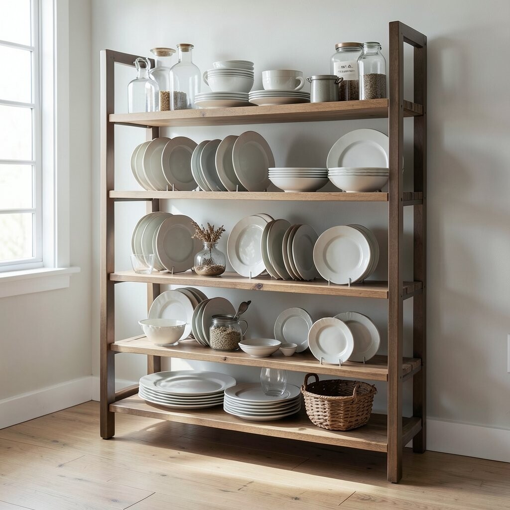 It is handy for keeping plates easy to grab while also making them part of the room style. That makes it a favorite for people who like beauty and function together.