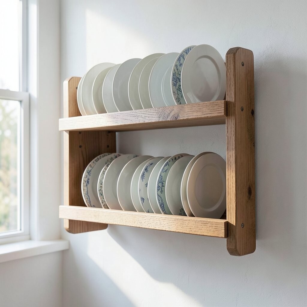 This style works well in kitchens, dining rooms, and even breakfast nooks. It keeps plates easy to reach and gives your wall a neat, tidy look.