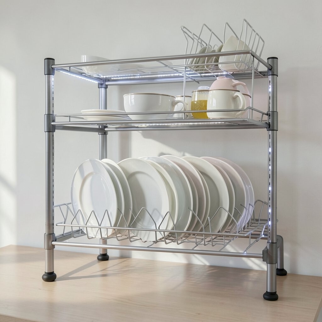 LED lighting can make a rack feel extra special at night. The soft glow helps plates shine and gives the room a cozy mood.
