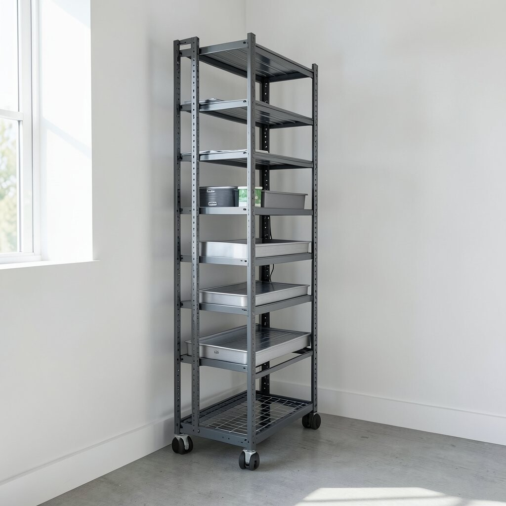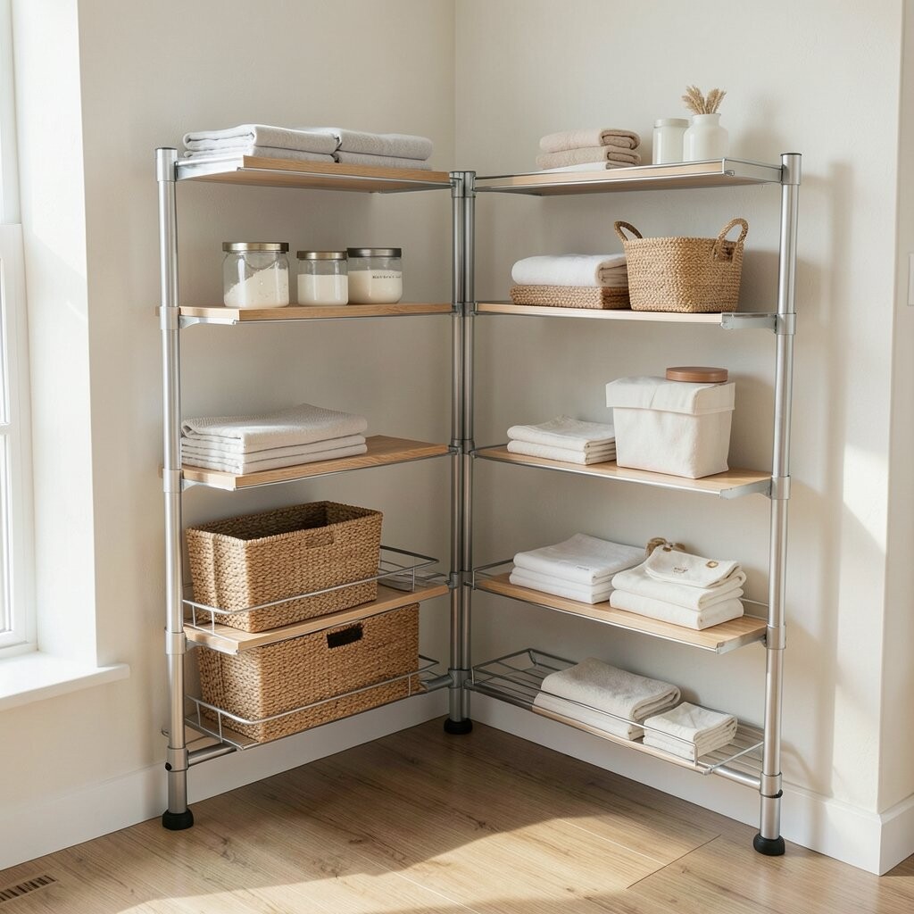 A tall, narrow rack is a clever choice for slim walls. It uses height instead of width, which is perfect for tight spaces.
