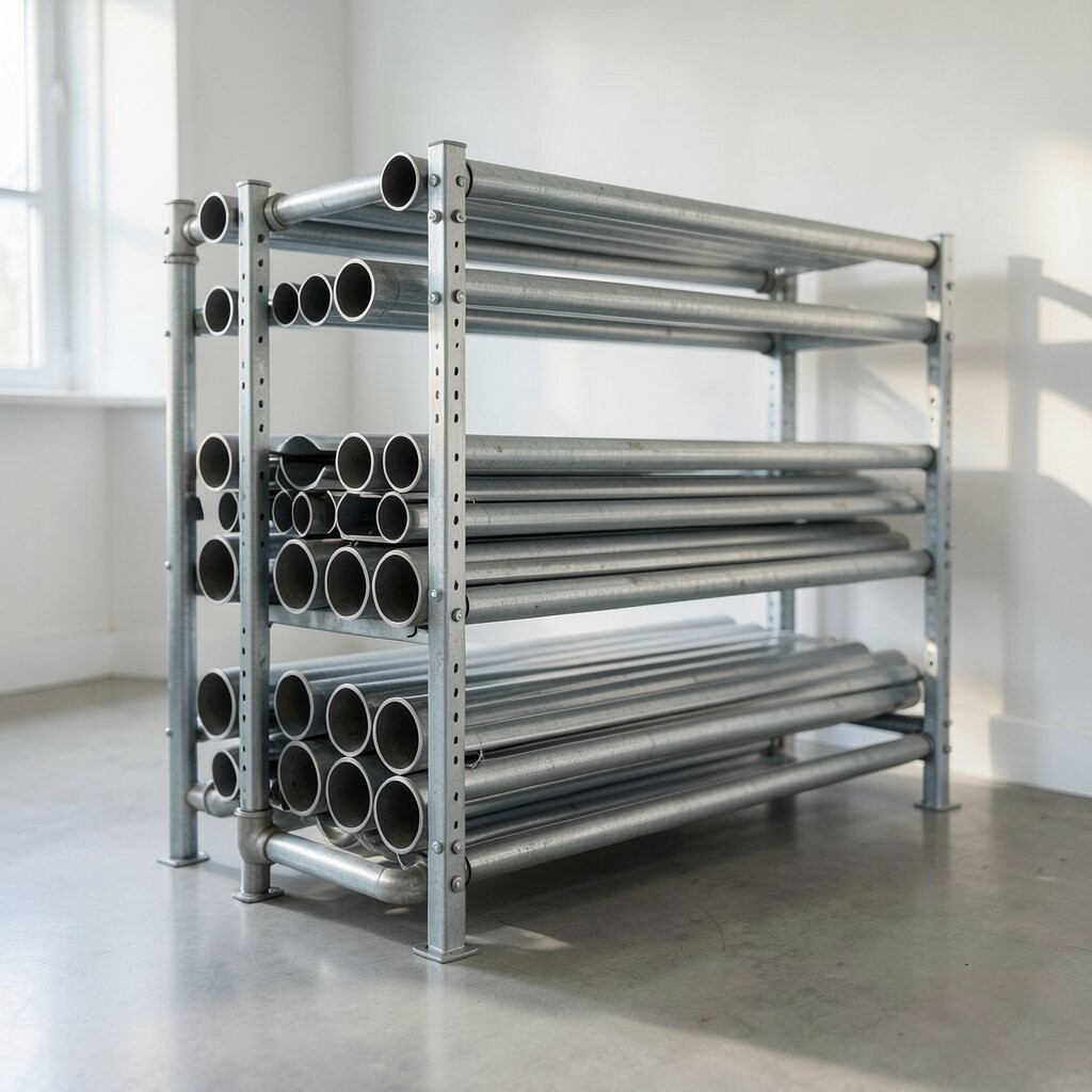 An industrial pipe rack has a bold, cool look. The pipes and fittings make it feel strong and a little edgy.