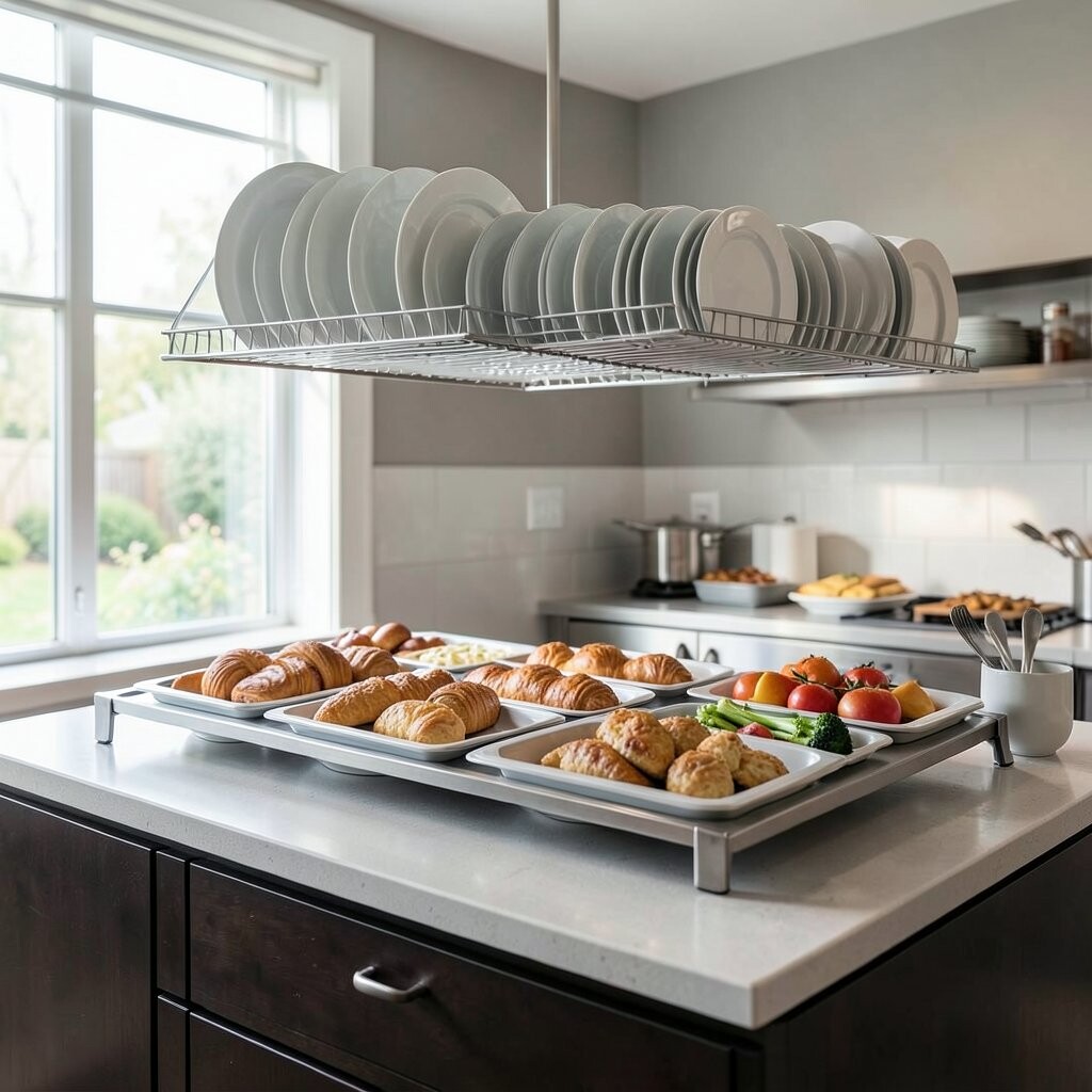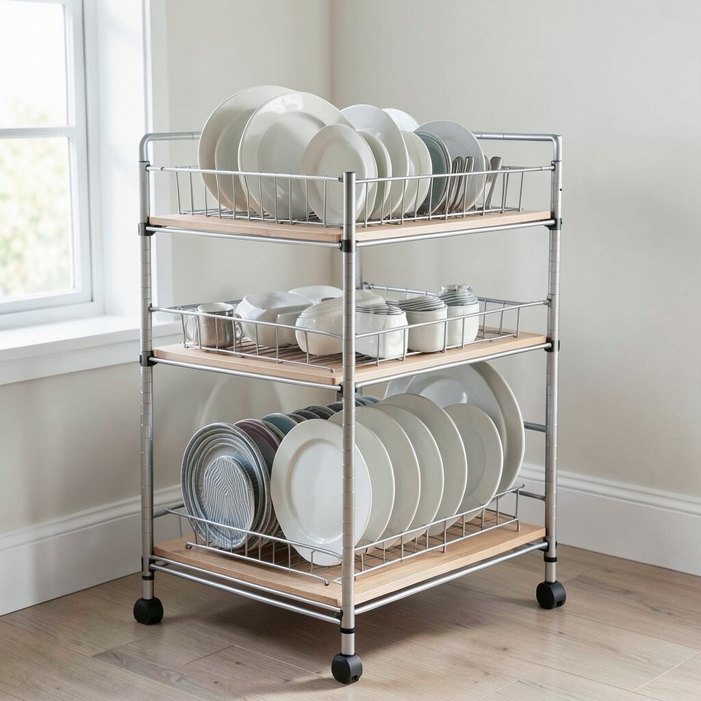 Adjustable shelves make life easier because you can move them as needed. That means your rack can fit plates, bowls, or even serving trays.