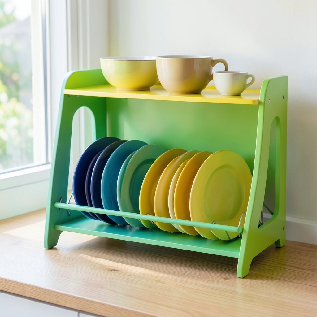 Its uniqueness comes from the color itself. A bold rack can make simple white plates look even prettier and more stylish.
