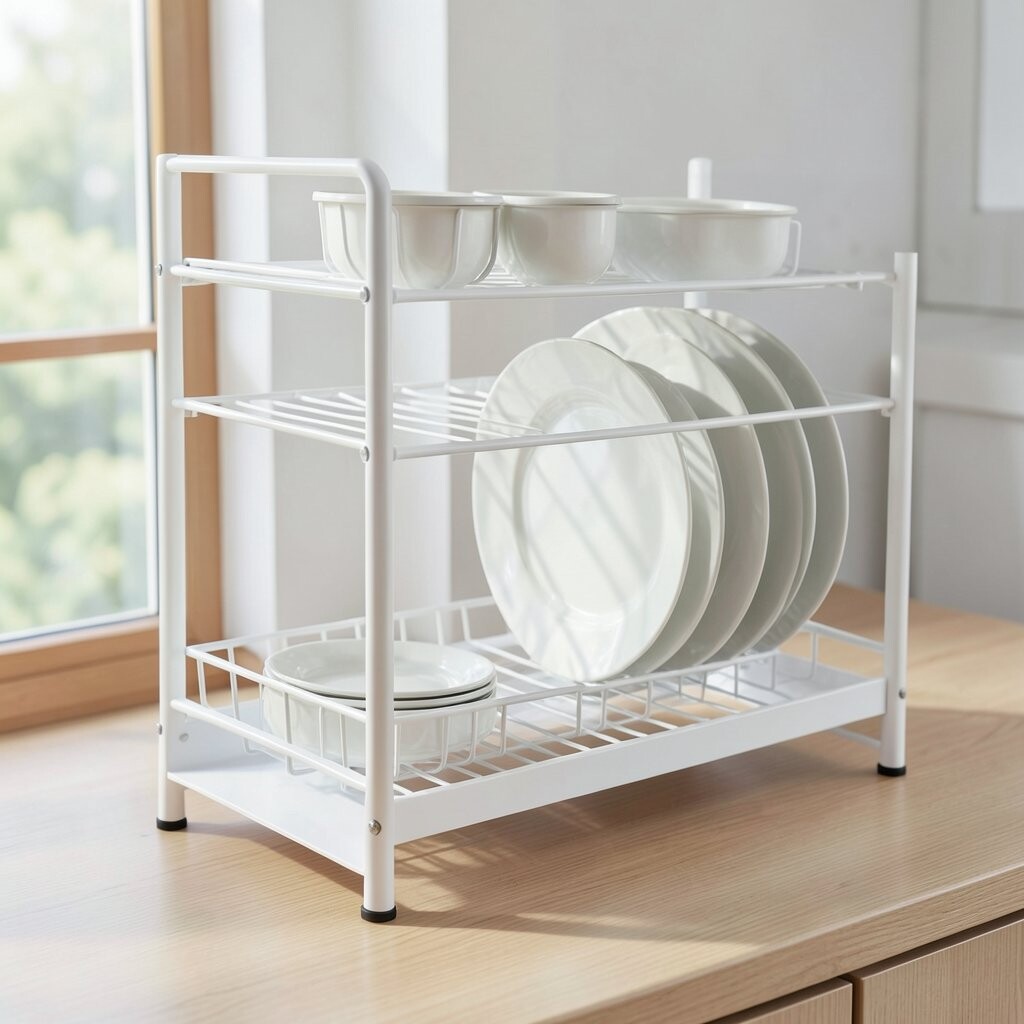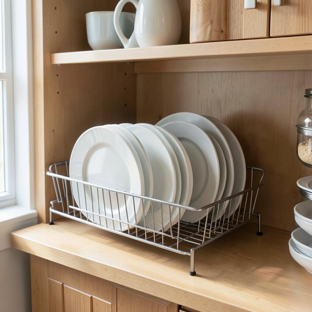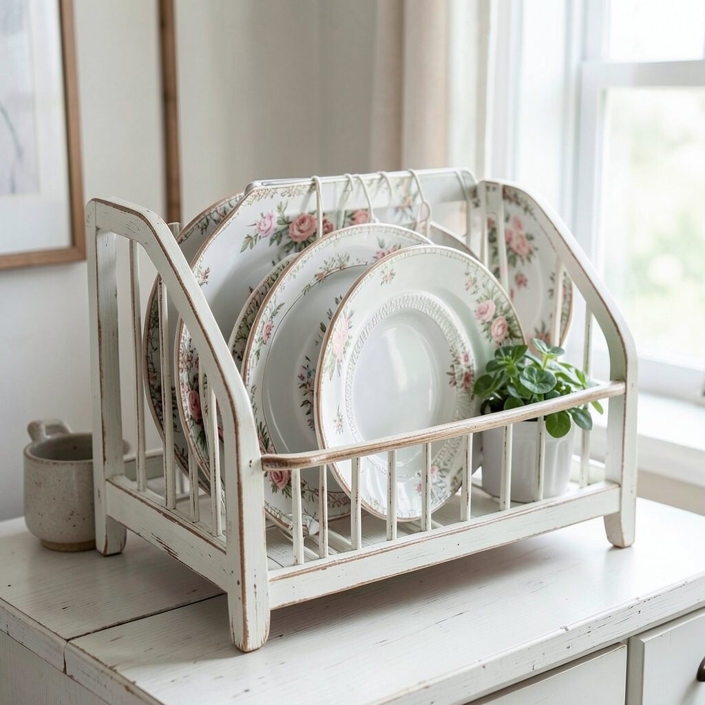 A white rack feels clean, calm, and easy to love. It blends in well and helps your plates take center stage.