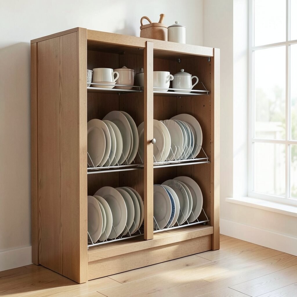 This is a great choice for people who want storage and style in one spot. It keeps plates safe and gives the room a custom-made feel.
