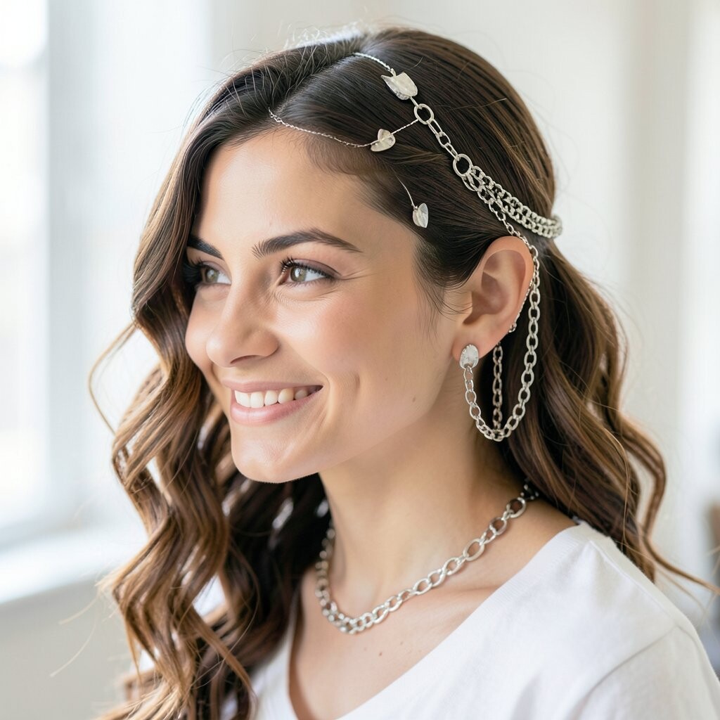 Add elegance with delicate hair chains. They drape beautifully across your hair.