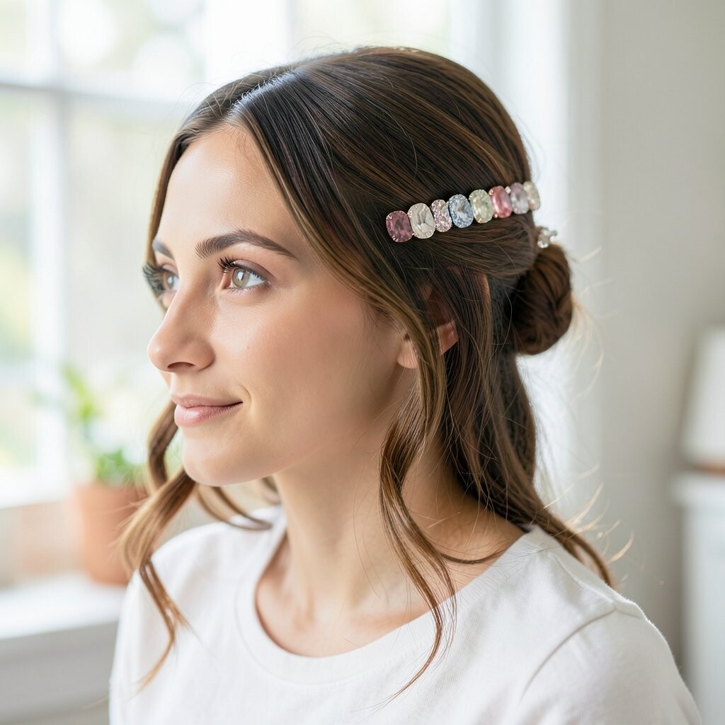 Gemstone barrettes add a pop of color and sparkle to your hair. They’re vibrant and eye-catching.