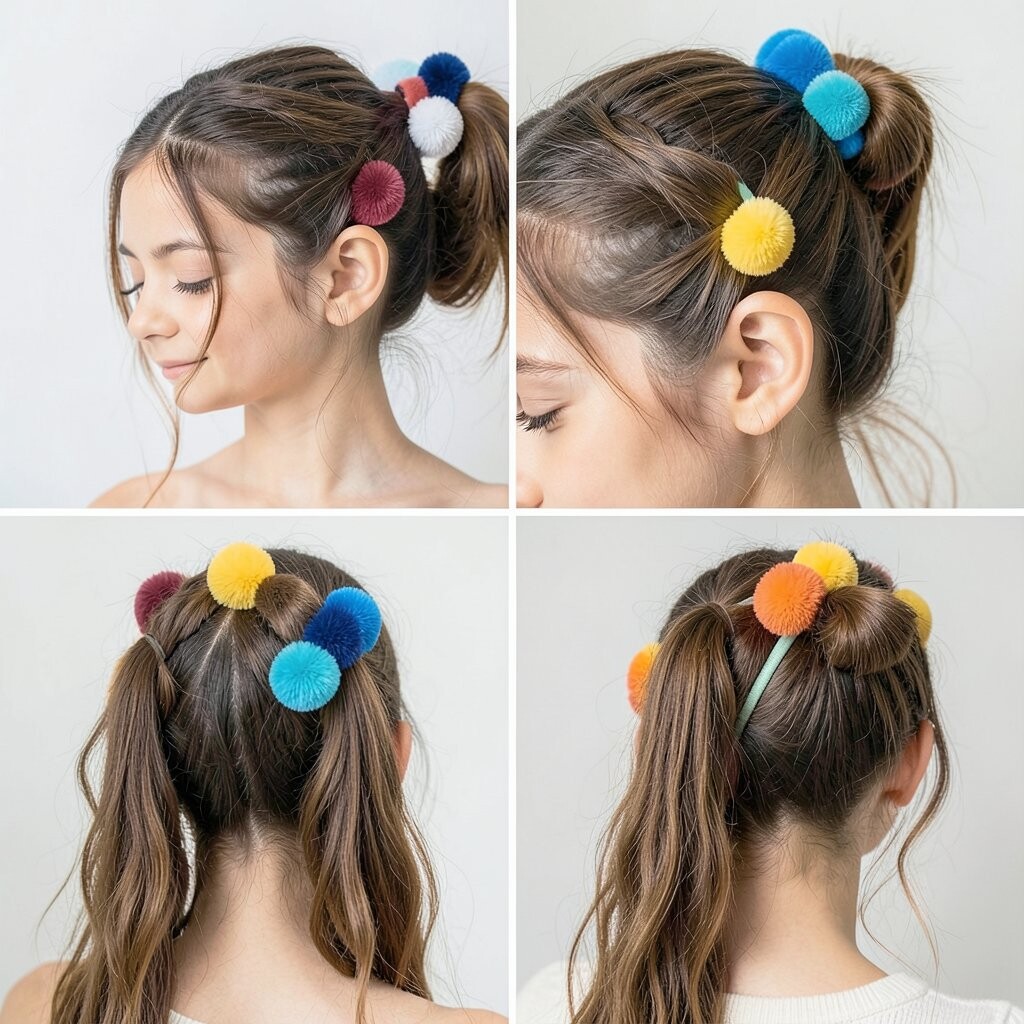 Pom-pom hair ties add a playful touch to your hairstyle. They’re fluffy, colorful, and fun!
