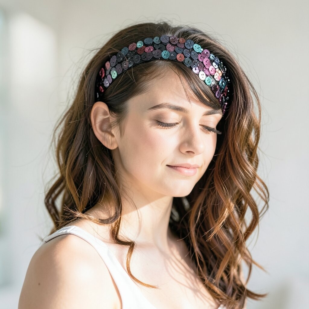 Sequin hair bands add a bit of sparkle and shine to your look. They’re perfect for parties or when you just want to feel fancy.