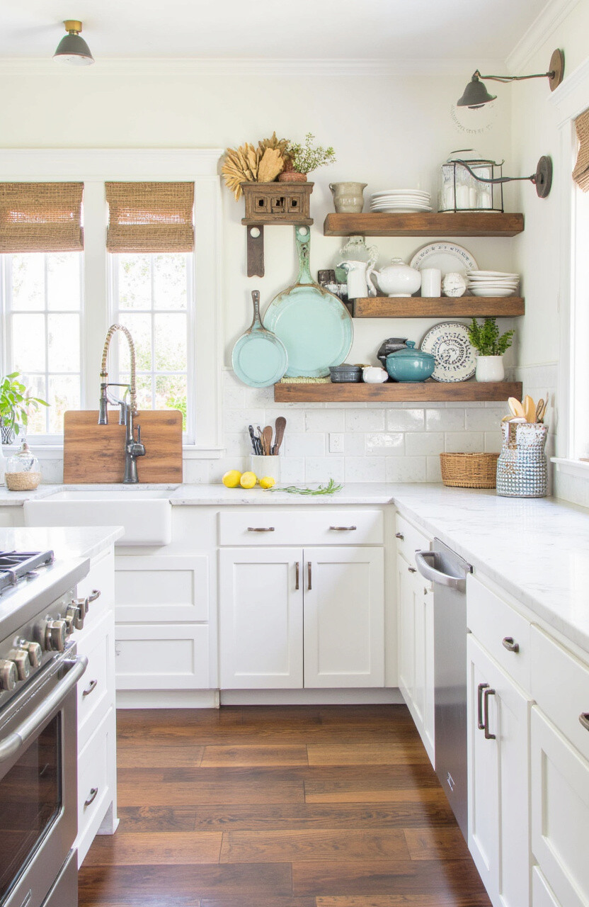 10. Farmhouse Chic with Open Shelves