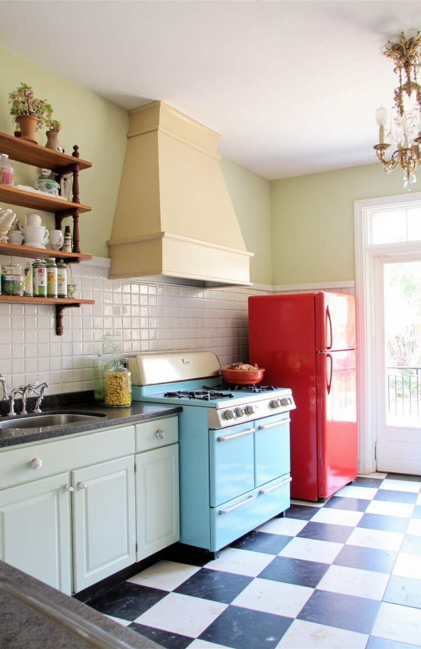 7. Retro Vibes with Colored Appliances