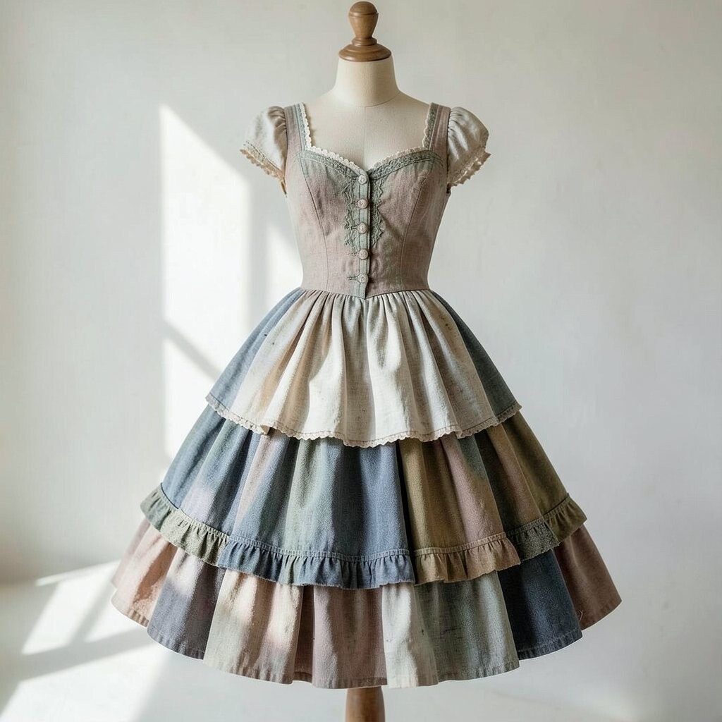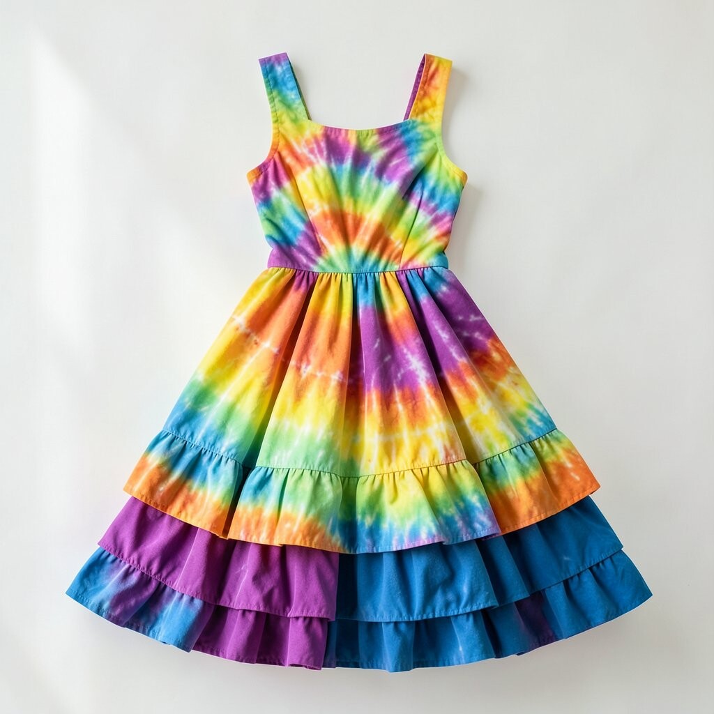 Tie-dye brings a burst of color and creativity to any dress. Layered tie-dye fabrics create a dynamic and eye-catching look. This style is perfect for summer festivals or casual outings.