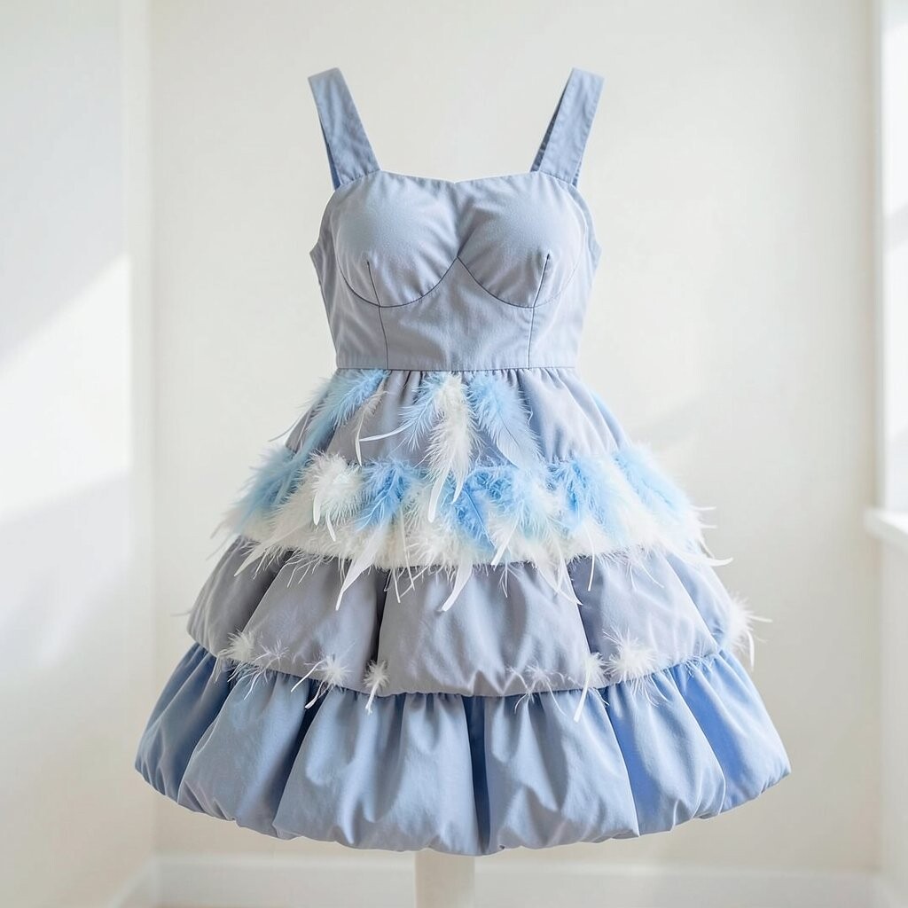 Feathers add a whimsical and playful touch to any dress. Layered feathers create movement and texture that’s truly unique. This style is perfect for parties or themed events.