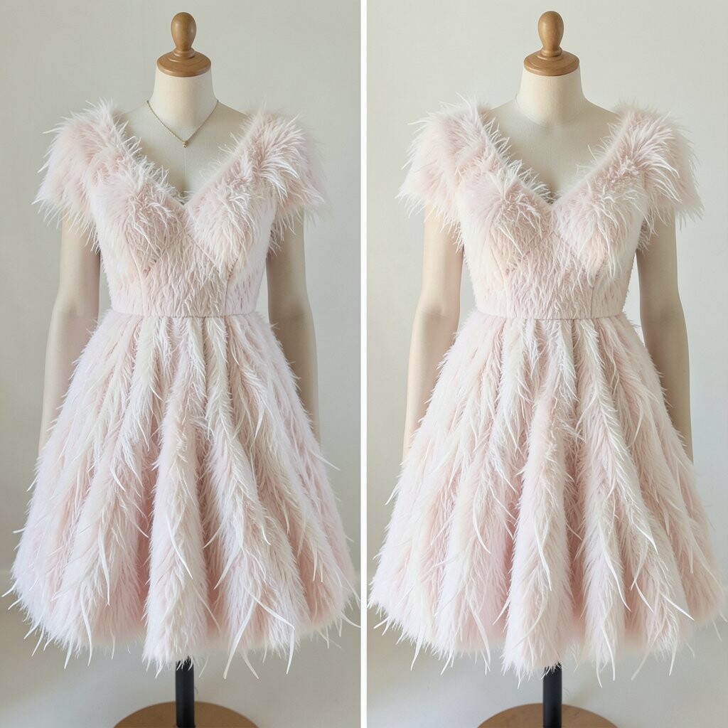 Feathers add a touch of whimsy to puffed dresses. It’s like wearing a dream!