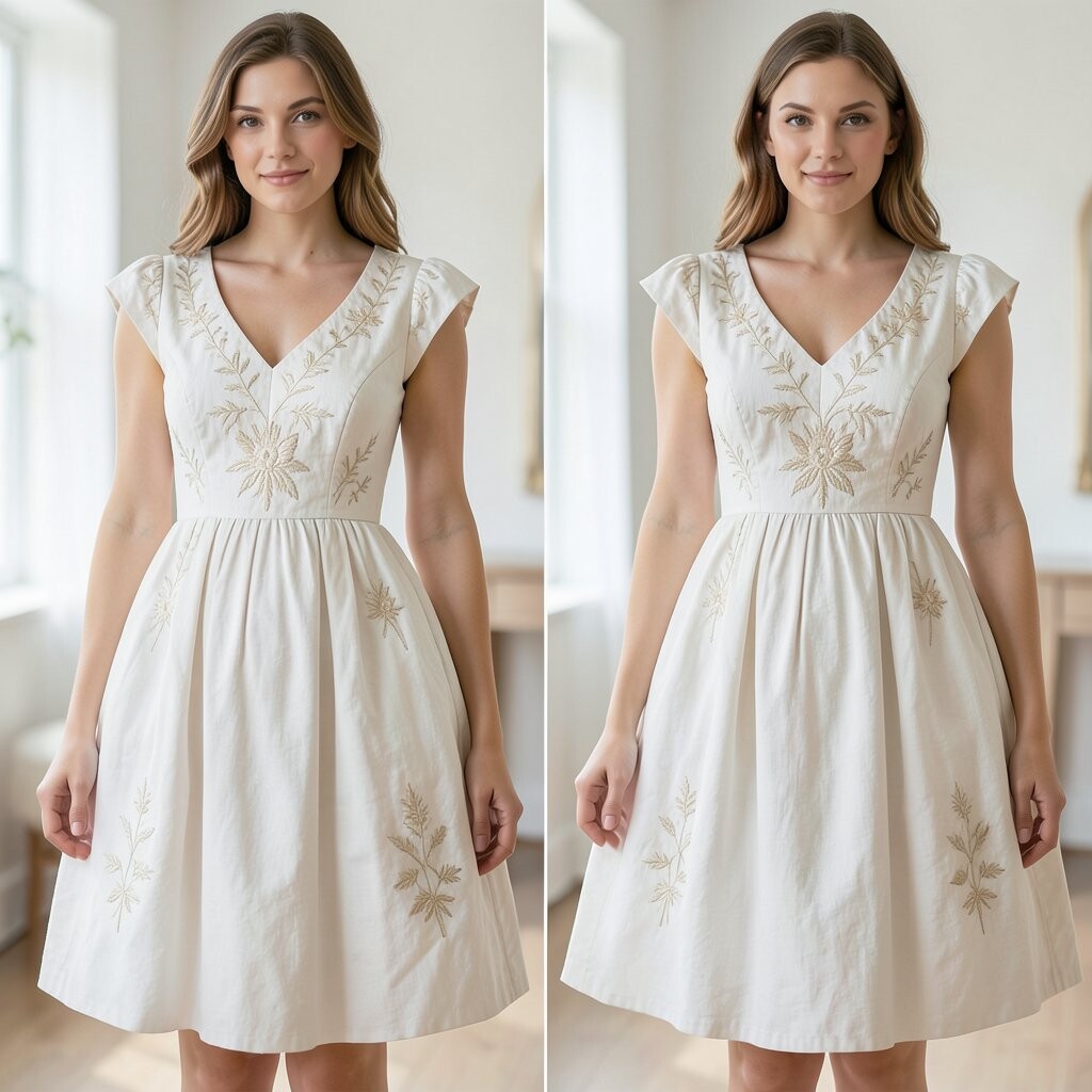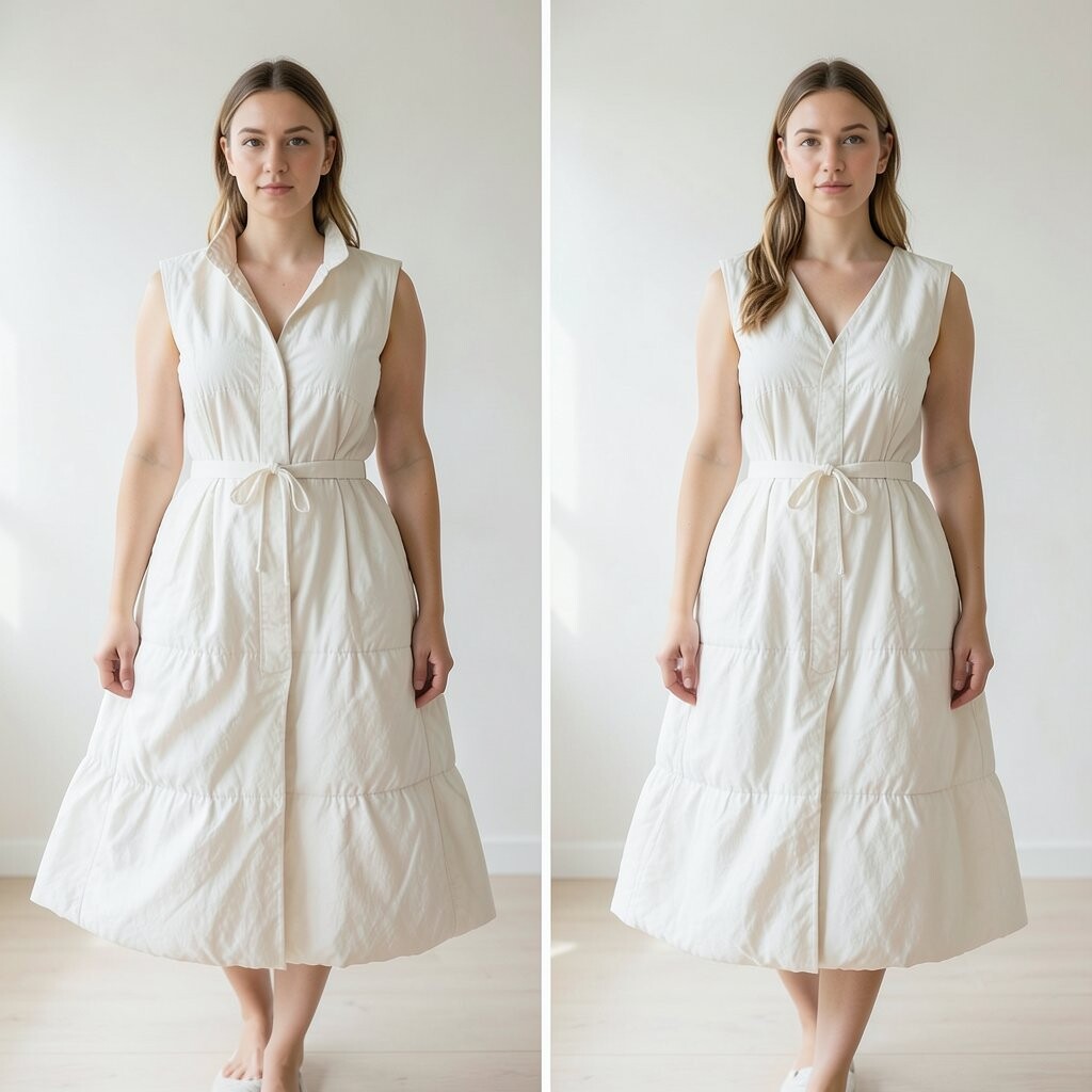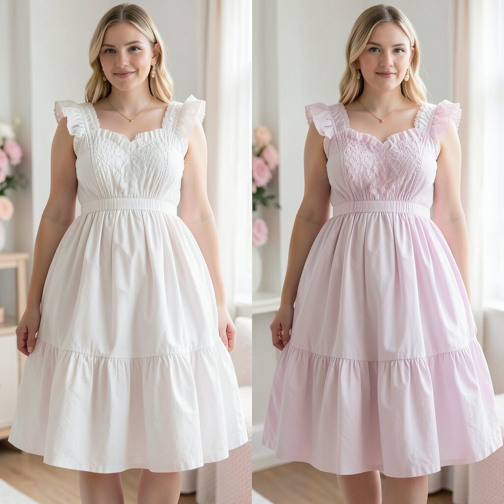 Picture a white dress with sleeves that puff out like cotton candy. It’s simple yet so elegant. Perfect for any occasion, whether it’s a wedding or a summer picnic.