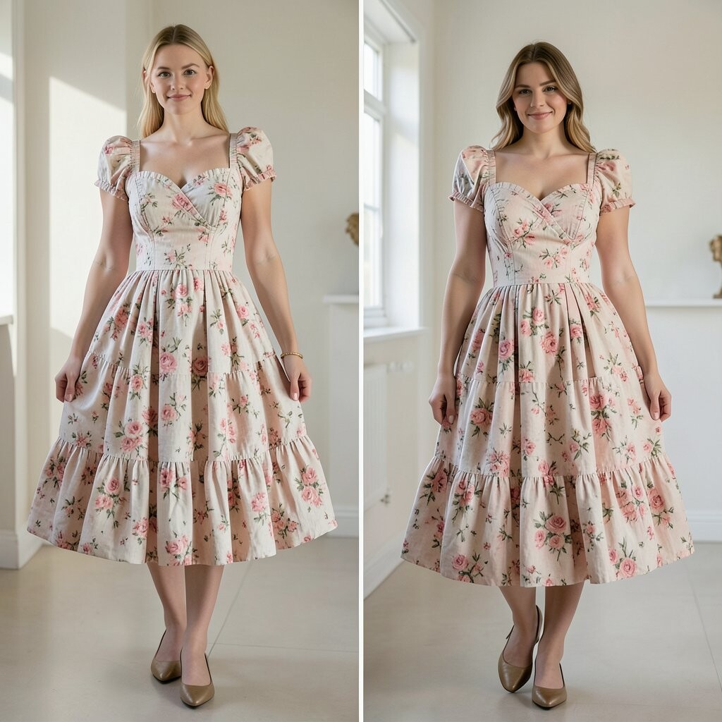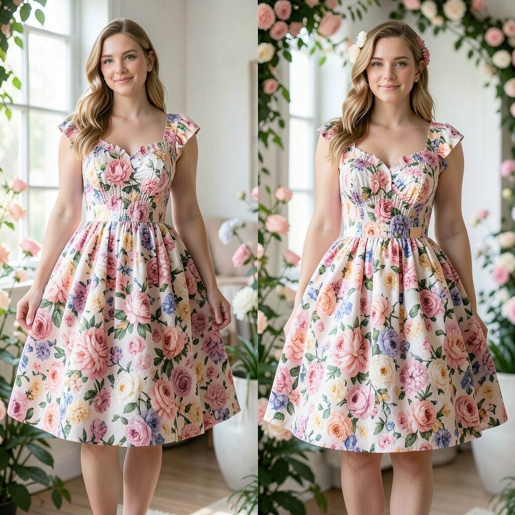 Imagine wearing a garden! A floral puffed dress brings nature’s beauty to your wardrobe. It’s like capturing a spring day in fabric.