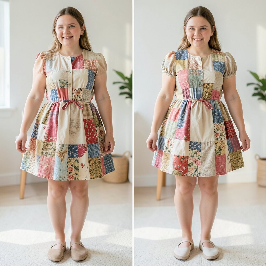 Patchwork gives puffed dresses a unique, artsy vibe. It’s colorful and creative.