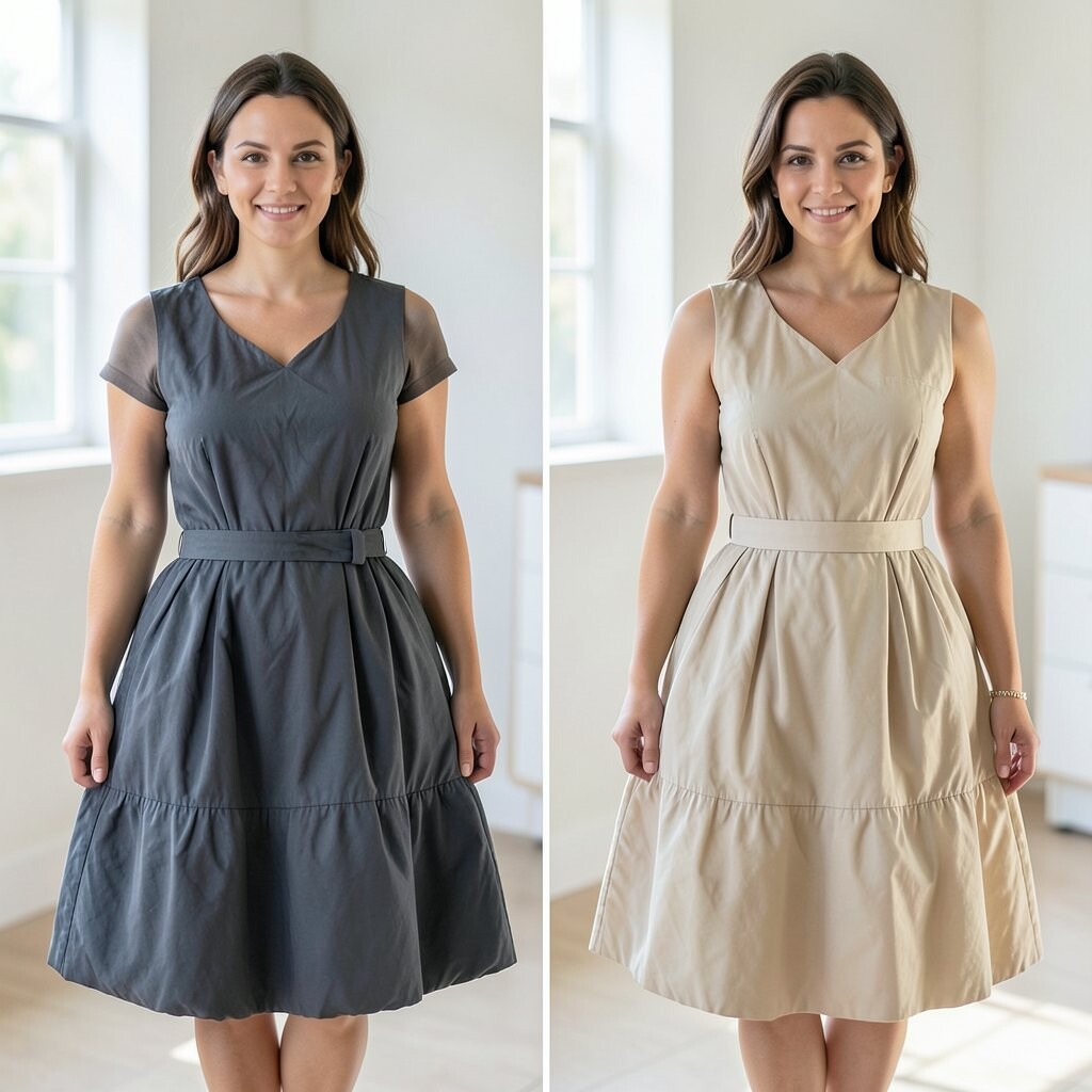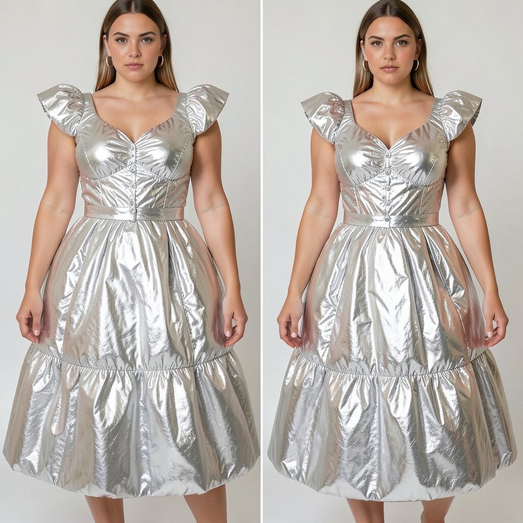 Shine bright in a metallic puffed dress. It’s like wearing liquid gold or silver, perfect for making a statement.
