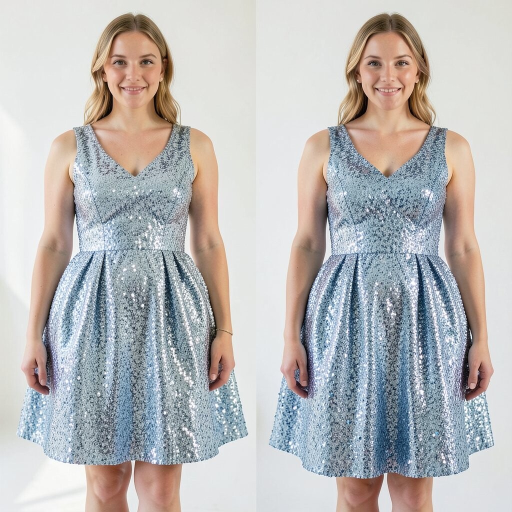 Pair with minimal jewelry to keep the focus on the dress. Sequin dresses are often mid-range to expensive due to the detailing.