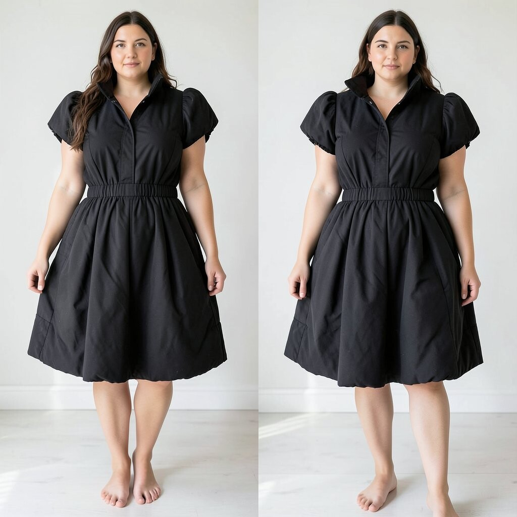 A black puffed dress is a wardrobe staple. It’s versatile and can be dressed up or down for any occasion. Perfect for a night out or a chic daytime look.