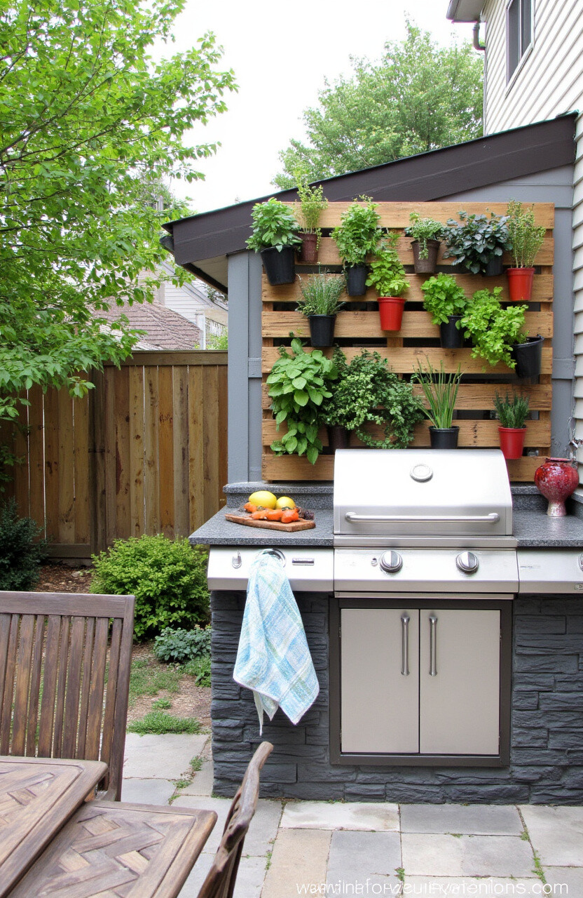 Install a vertical herb garden near your grill for fresh flavors at your fingertips. It’s a space-saving way to add greenery and functionality. The scent of herbs enhances the cooking experience.