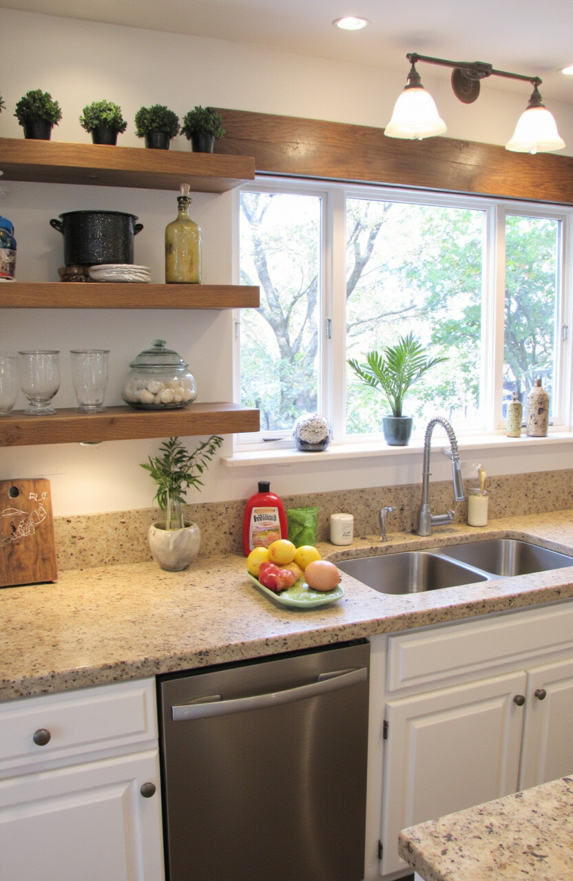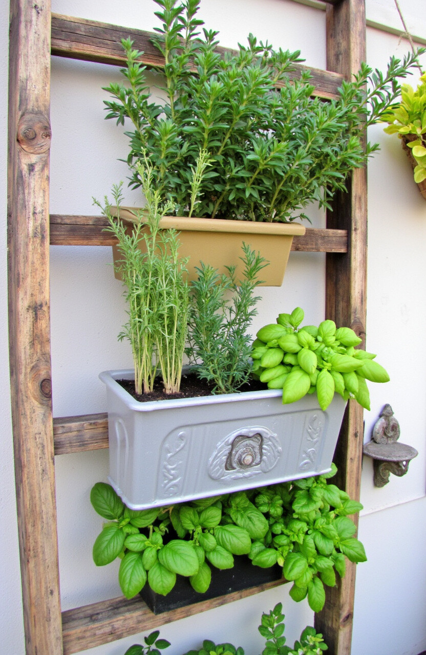 A hanging herb garden is both practical and charming. Use wooden pallets or old ladders to create vertical planters. They save space and add greenery to your kitchen.