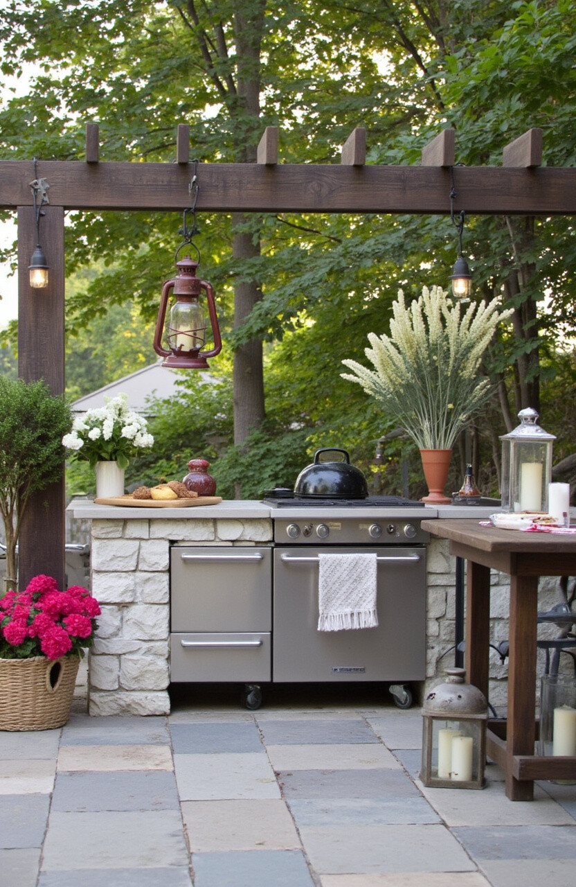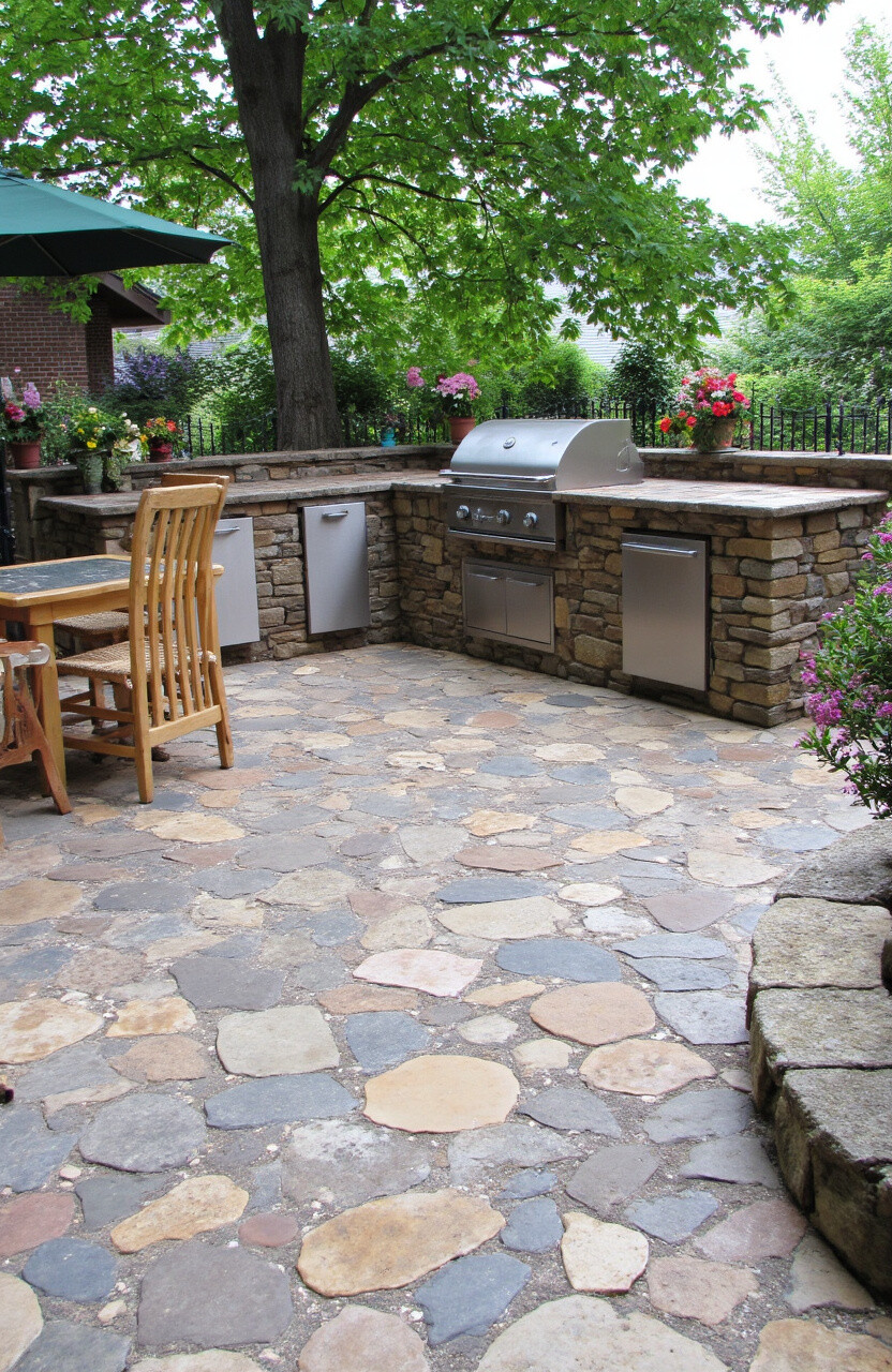 It’s durable and weathers beautifully over time. Cobblestone is perfect for defining dining or cooking areas. Consider local stone for an authentic touch.