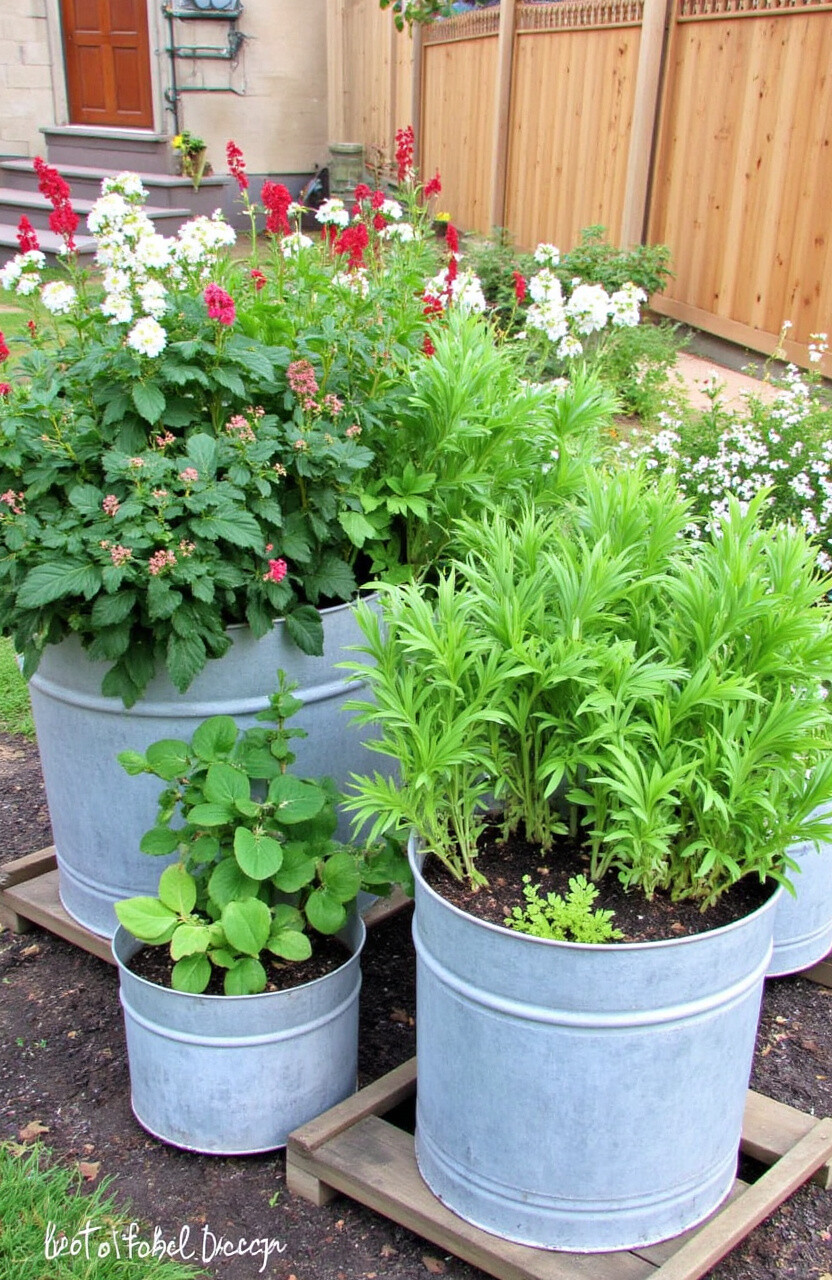Use galvanized steel planters to grow herbs and flowers. They have a rustic, industrial look that’s trendy and practical.