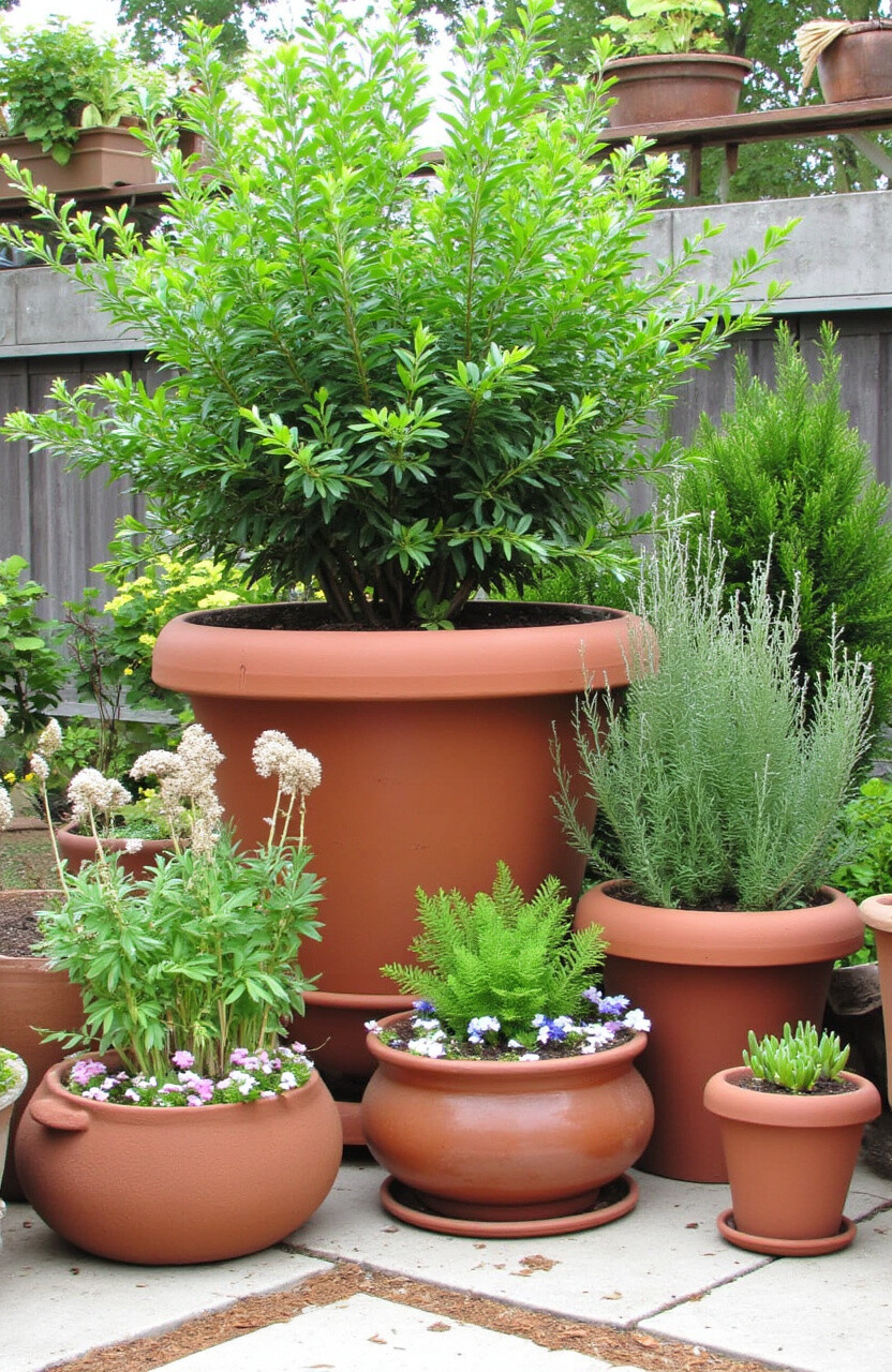 They’re affordable and easy to find. Use them for herbs, flowers, or even small trees. Group them in varying sizes for visual interest.