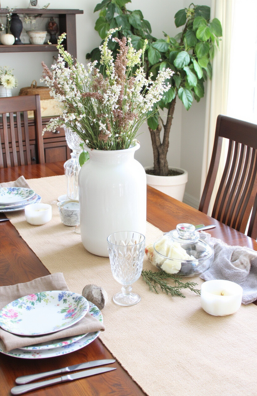 A burlap table runner adds a touch of rustic elegance to your dining table. It’s simple, yet makes a statement with its earthy texture.