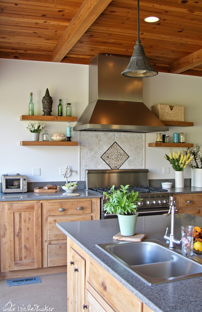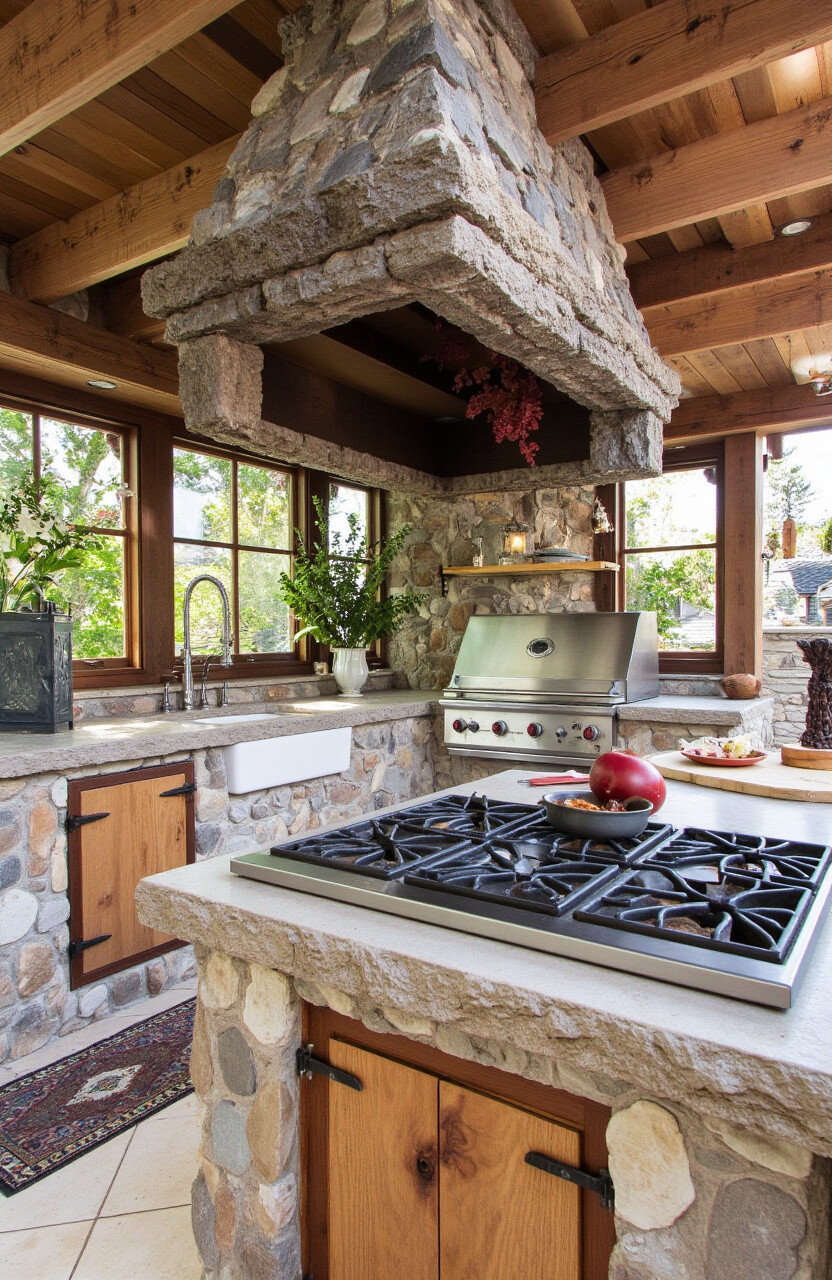 Combine stone and wood materials for your cooktop area. The natural elements create a harmonious, rustic feel.