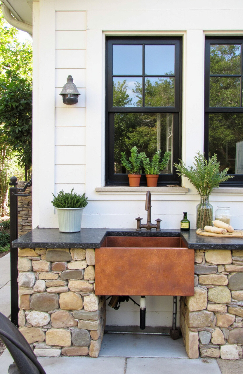 A farmhouse sink can be the centerpiece of your outdoor kitchen. Its deep basin is perfect for washing fresh garden vegetables or BBQ tools. The old-world charm is undeniable.