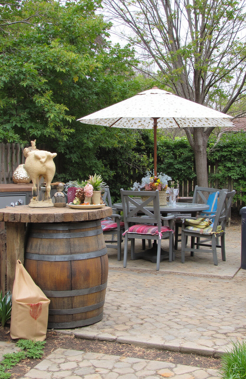 Old barrels make unique, rustic tables. Use them as side tables or even a central dining table with a glass top.