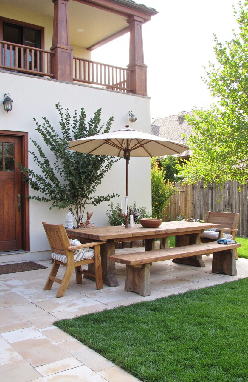 Benches provide a communal feel, perfect for gatherings. Their rustic look is timeless and complements any outdoor decor. Consider cushions for added comfort.