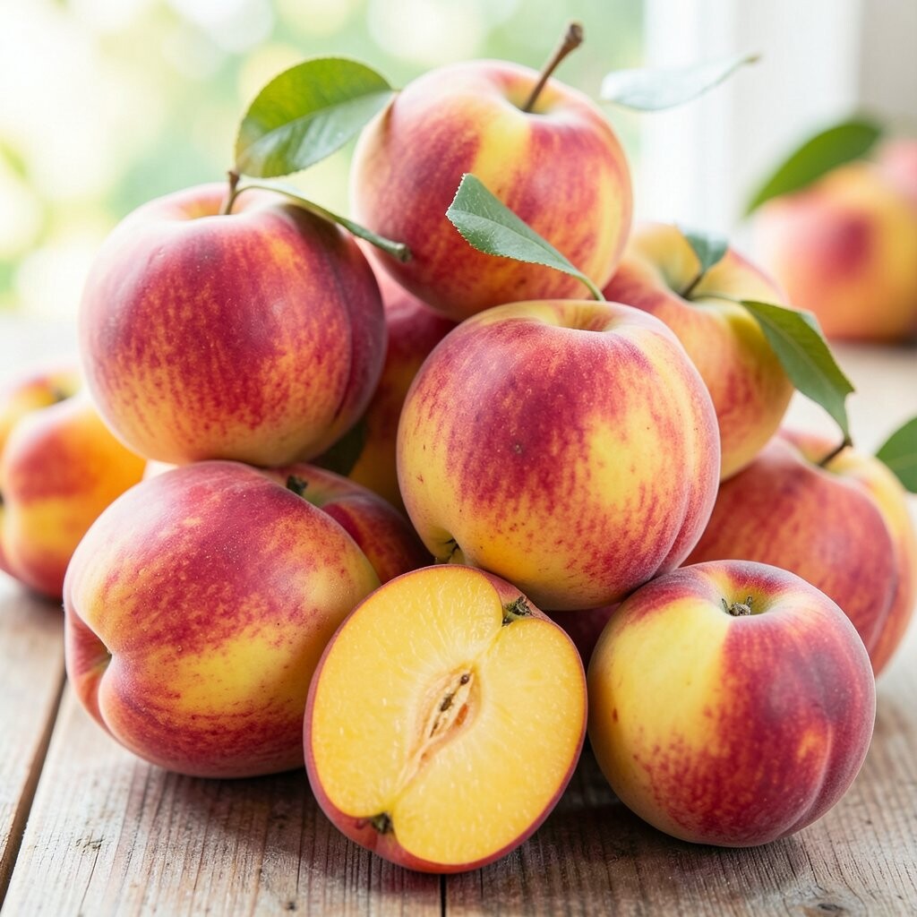 Nectarines are a sweet summer treat. Their smooth skin and juicy flesh are delightful.