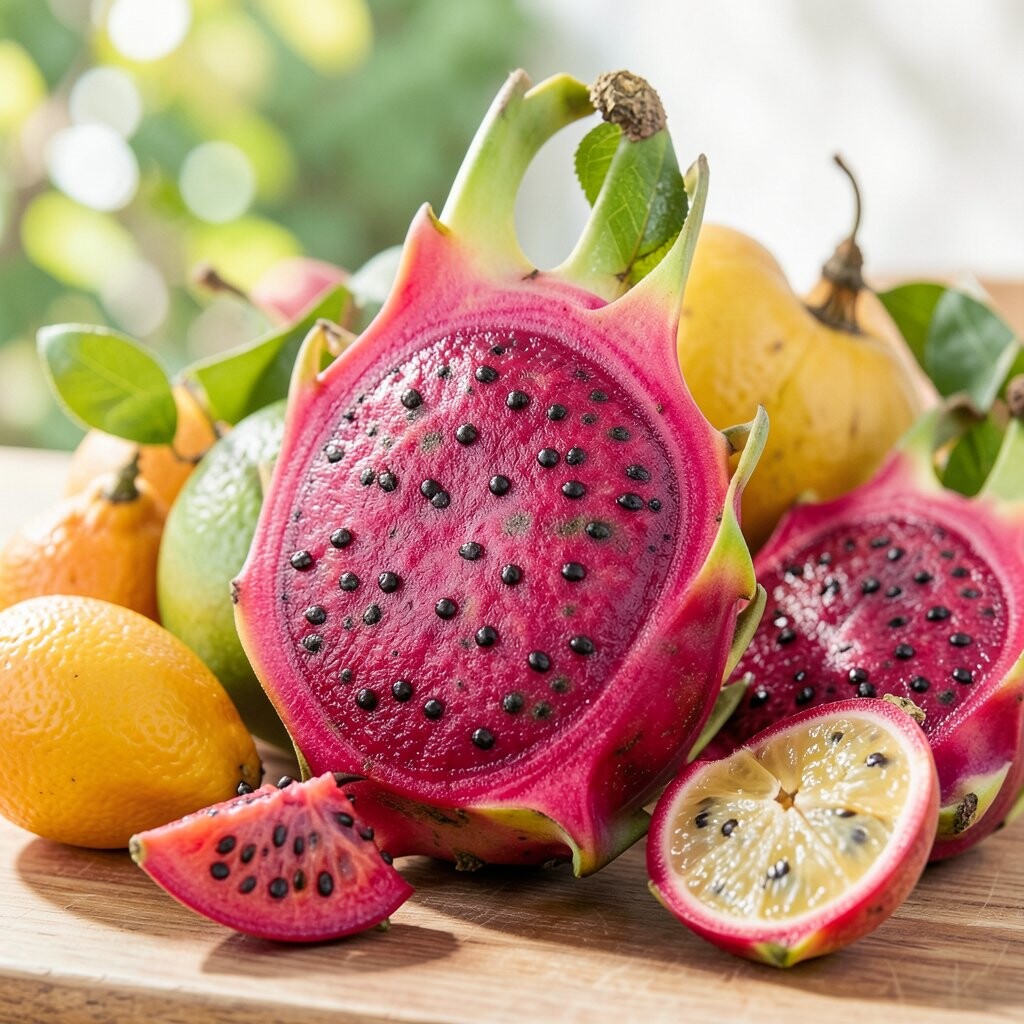 Dragon fruit is a showstopper on any table. Its vibrant pink skin and speckled flesh are striking.