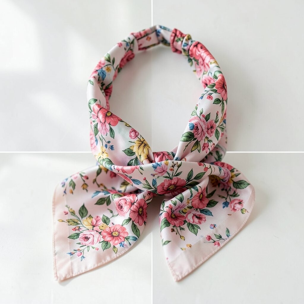 It’s a fun way to add personality to your look. A scarf with small, delicate flowers works well for this style.