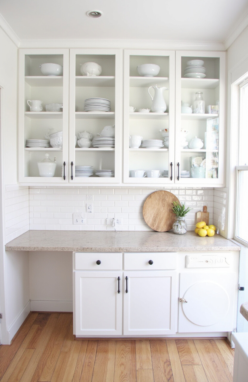Glass doors make a kitchen look more elegant and airy. They require keeping the contents neat, but they offer a high-end look without a high-end price.