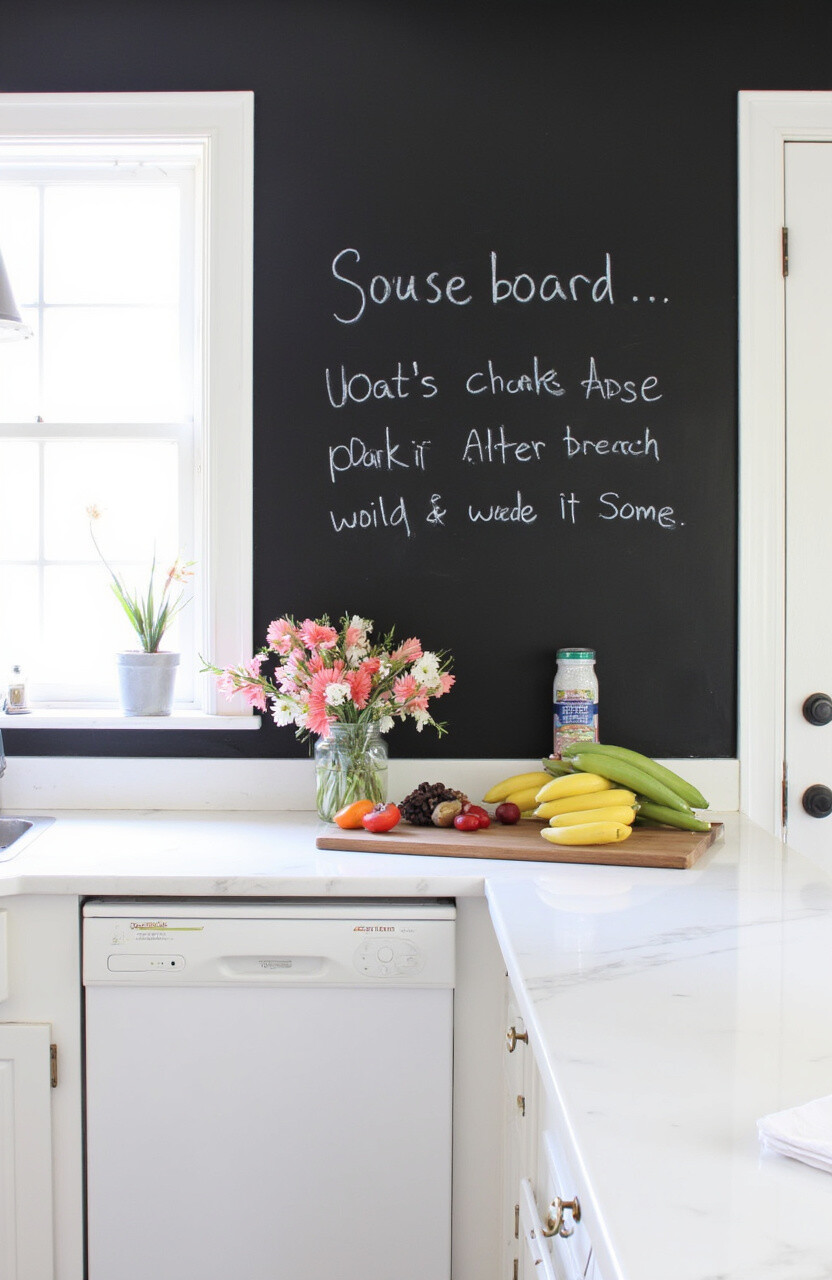 Paint one wall with chalkboard paint for a fun, functional feature. Use it for grocery lists, menus, or doodles. It’s a great way to involve kids in kitchen activities.
